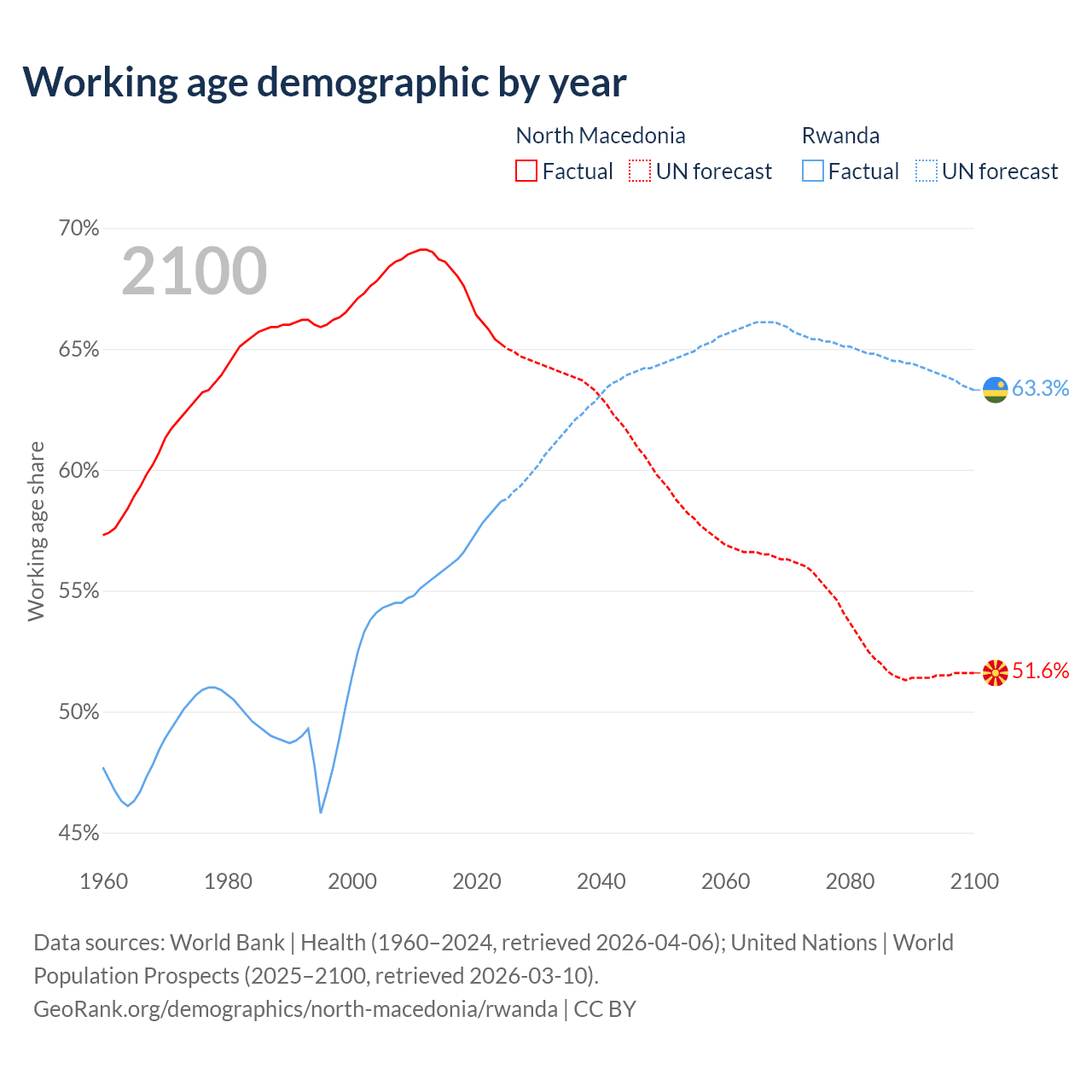 - North Macedonia has 1.18M working age adults (aged 15-64) vs 8.79M in Rwanda.