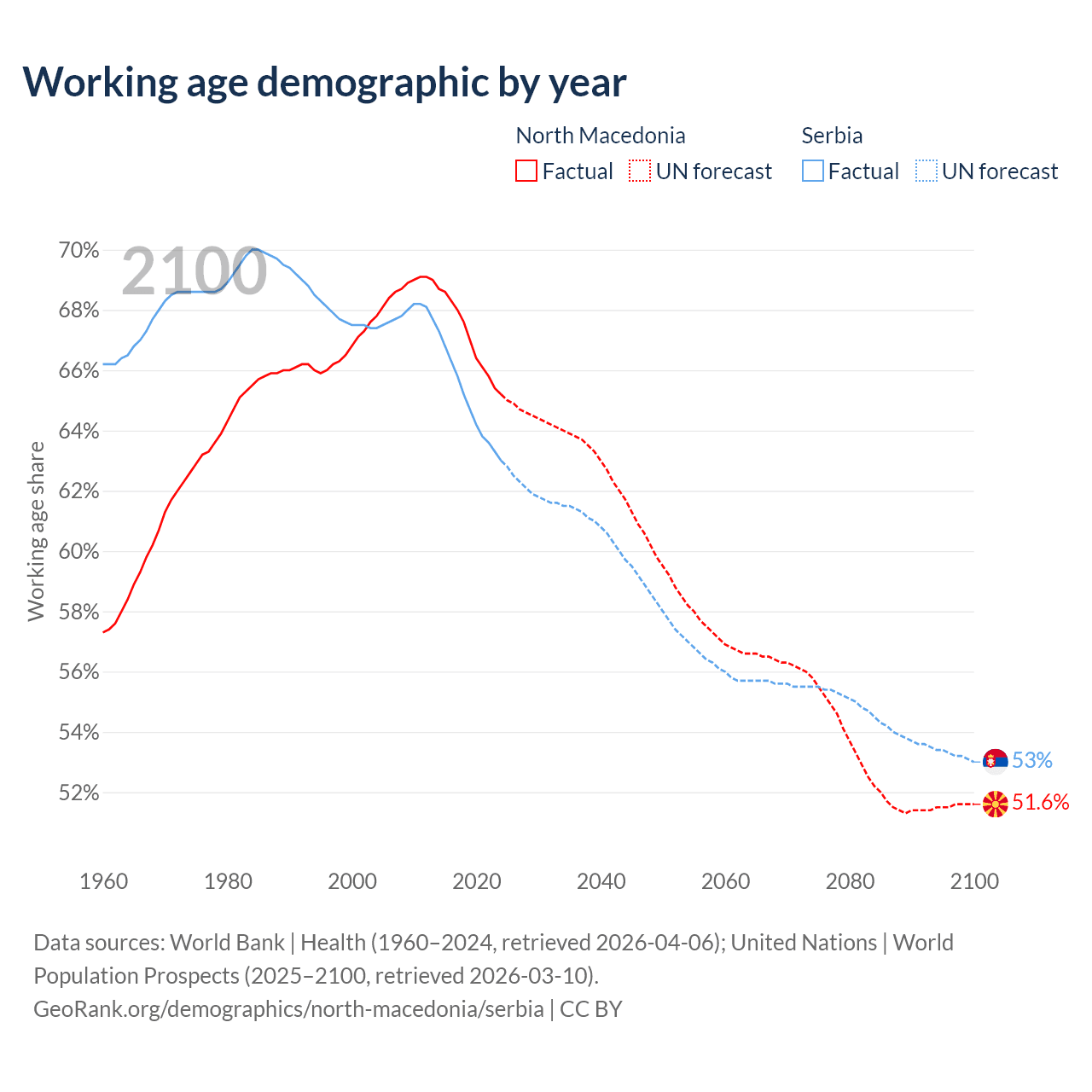 - North Macedonia has 1.18M working age adults (aged 15-64) vs 4.09M in Serbia.