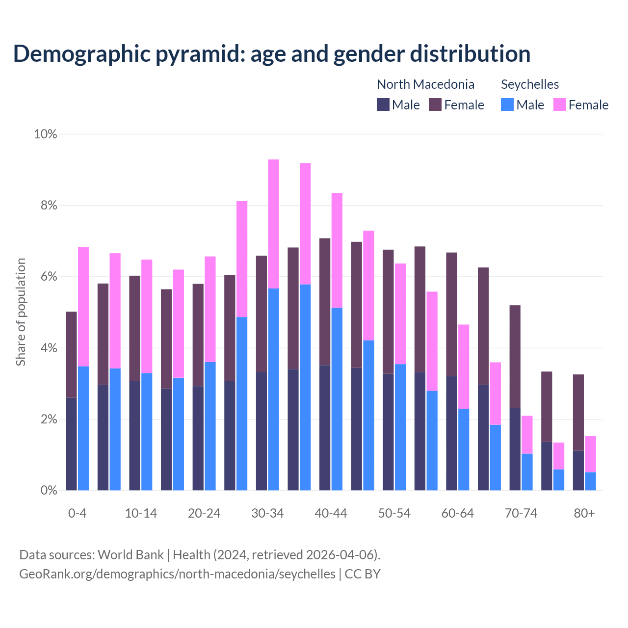 - As of 2026, the population of North Macedonia is 1.81M vs 126K in the Seychelles - 14.3 times difference.