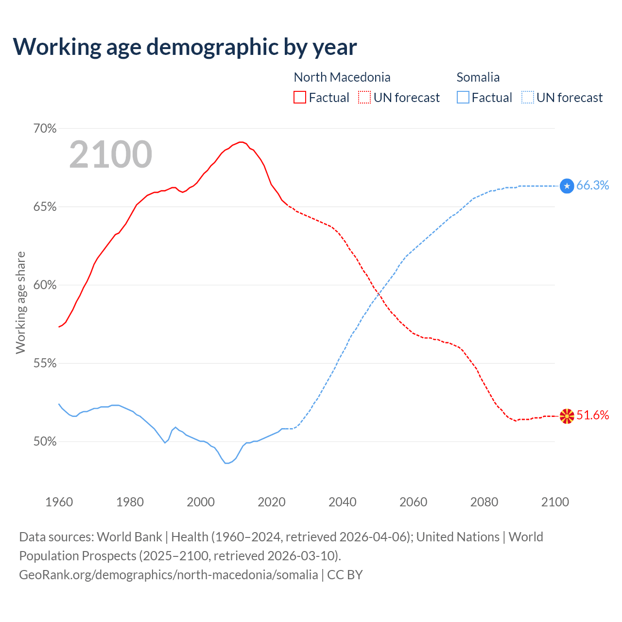 - North Macedonia has 1.18M working age adults (aged 15-64) vs 10.4M in Somalia.