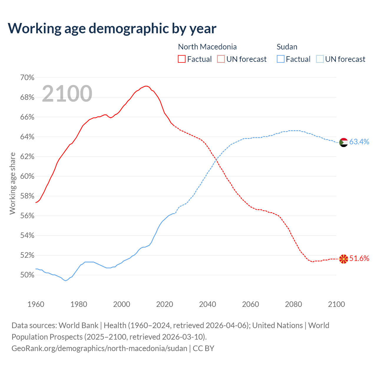 - North Macedonia has 1.18M working age adults (aged 15-64) vs 30M in Sudan.