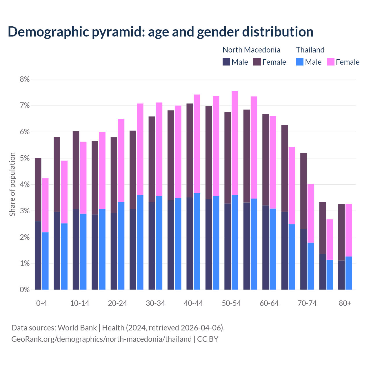 Demographics of North Macedonia compared to Thailand: