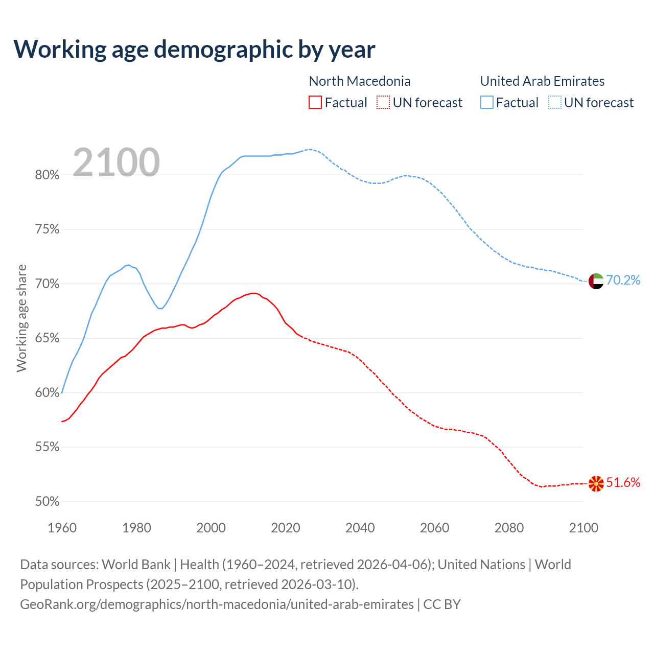 - North Macedonia has 1.18M working age adults (aged 15-64) vs 9.6M in the United Arab Emirates.