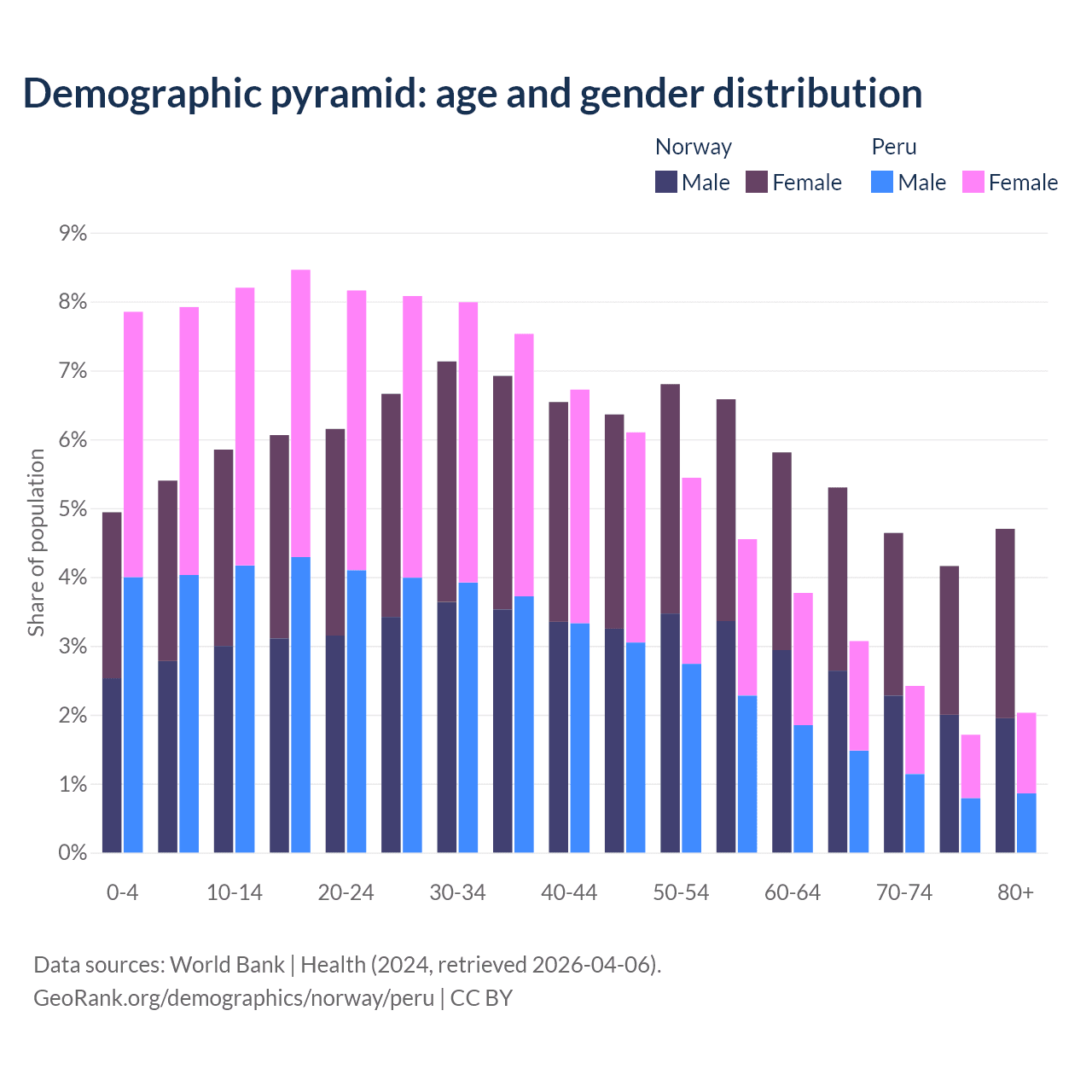 Demographics of Norway compared to Peru: