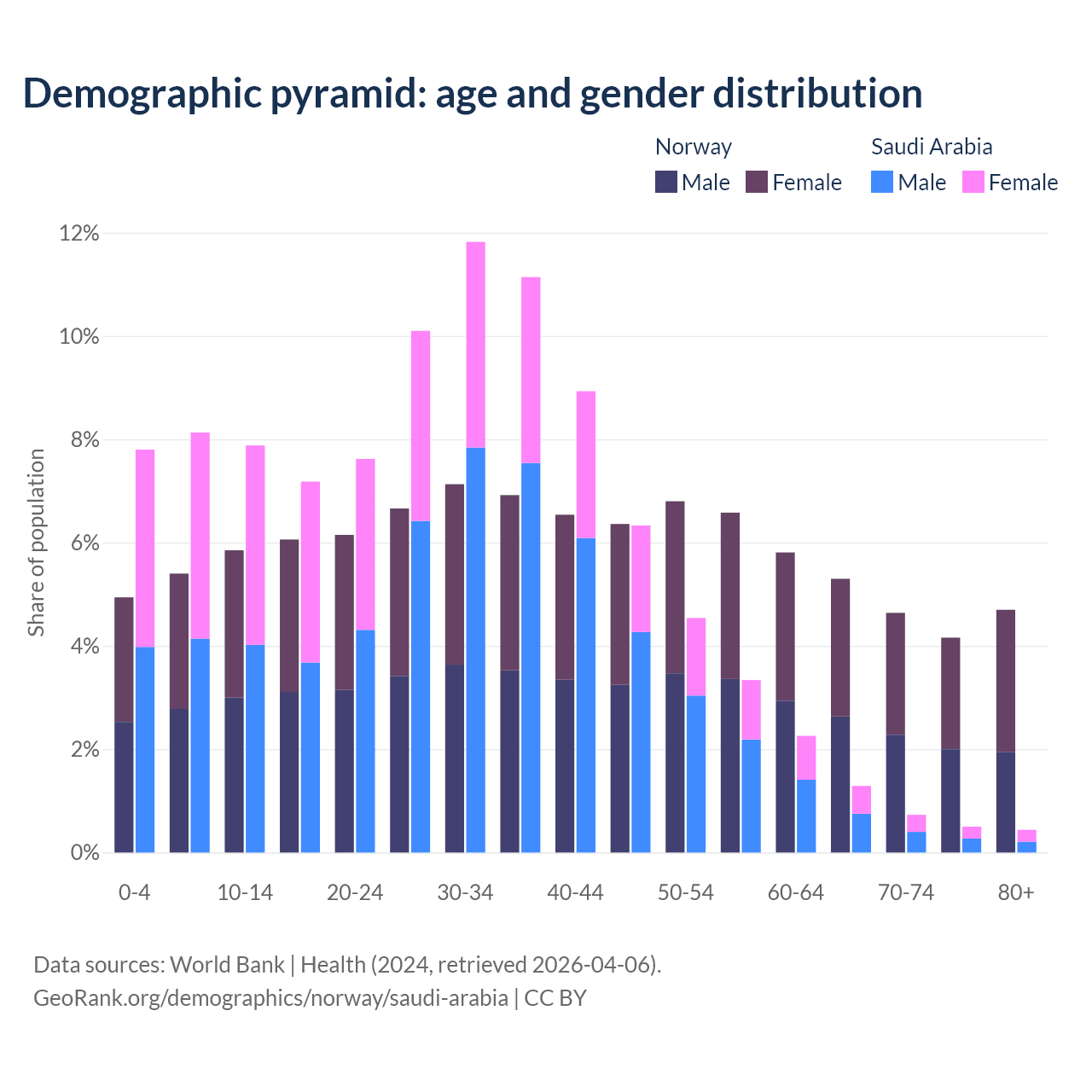Demographics of Norway compared to Saudi Arabia: