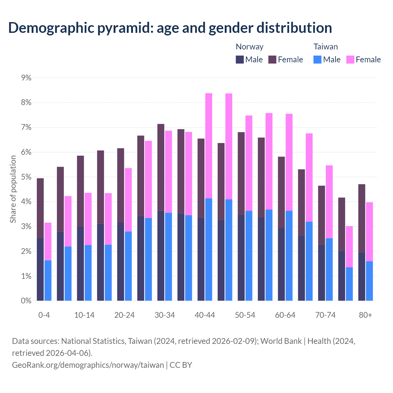 Demographics of Norway compared to Taiwan: