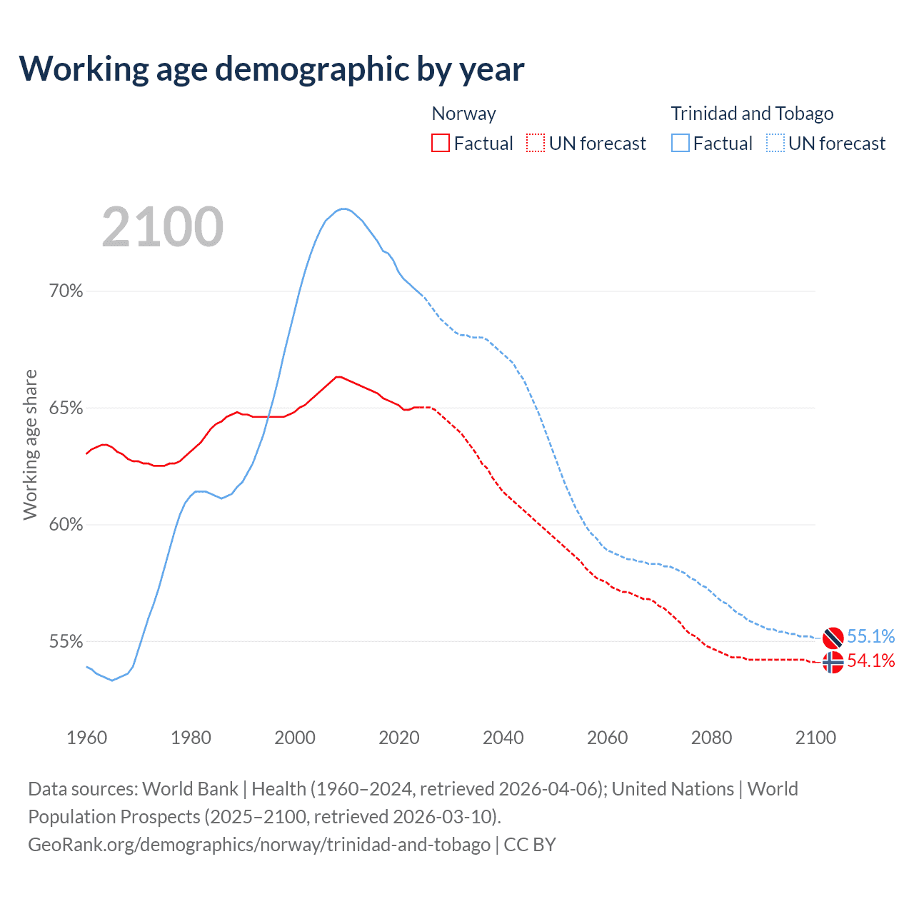 - Norway has 3.69M working age adults (aged 15-64) vs 960K in Trinidad and Tobago.