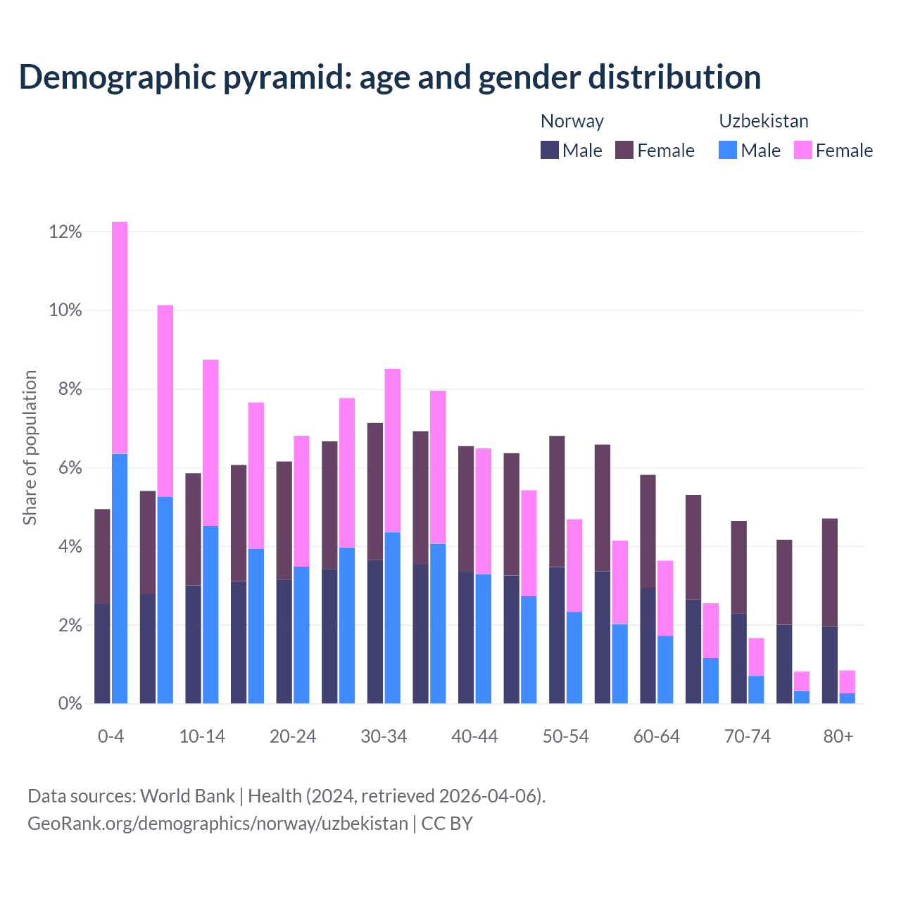 Demographics of Norway compared to Uzbekistan:
