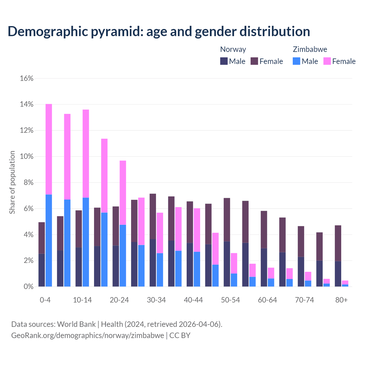 Demographics of Norway compared to Zimbabwe: