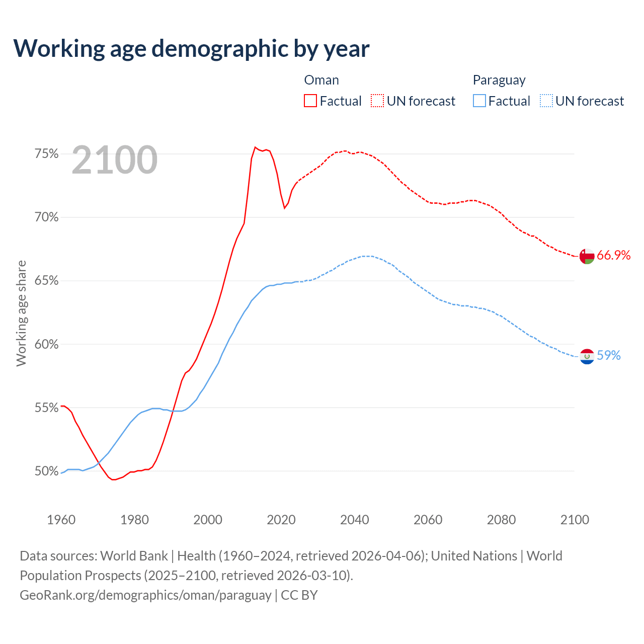 - Oman has 4.19M working age adults (aged 15-64) vs 4.62M in Paraguay.