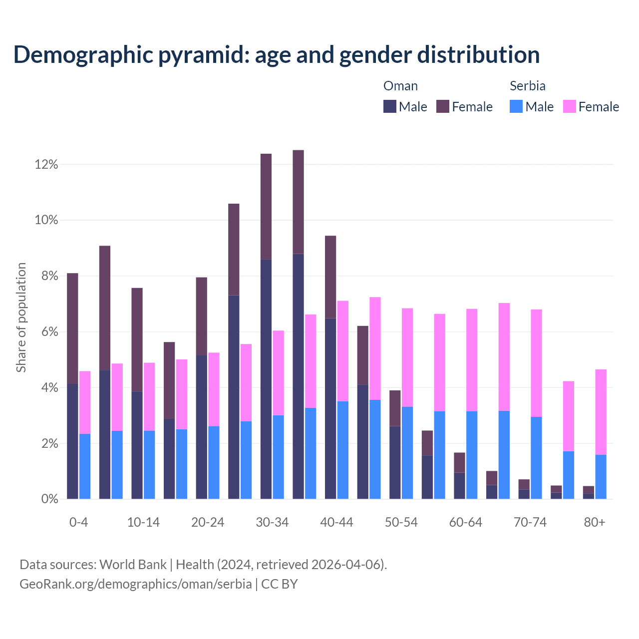 Demographics of Oman compared to Serbia:
