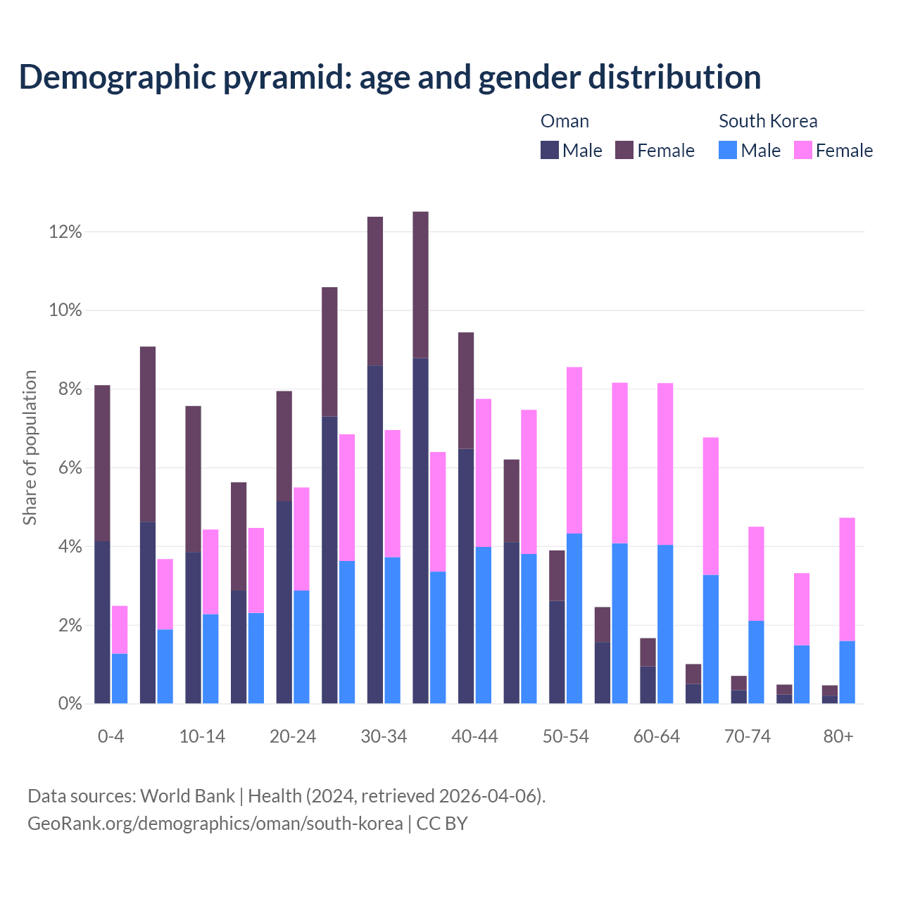 Demographics of Oman compared to South Korea:
