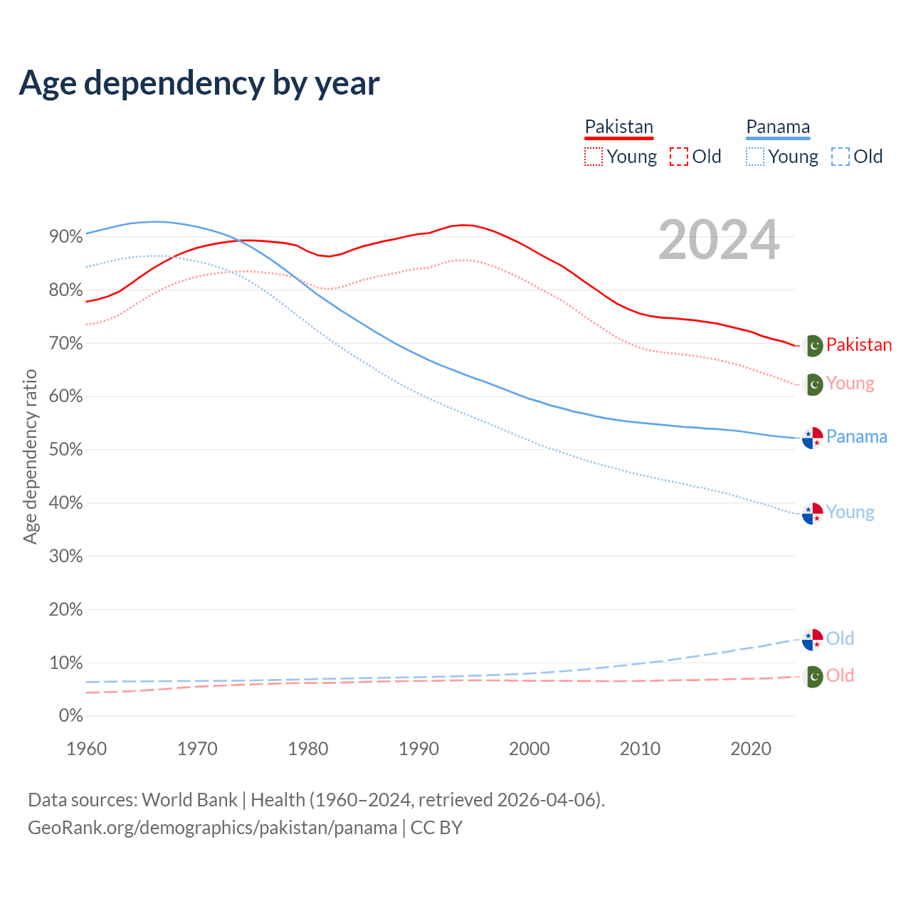 - Pakistan is ranked 154/196 by median age (oldest to youngest) vs 94/196 for Panama.