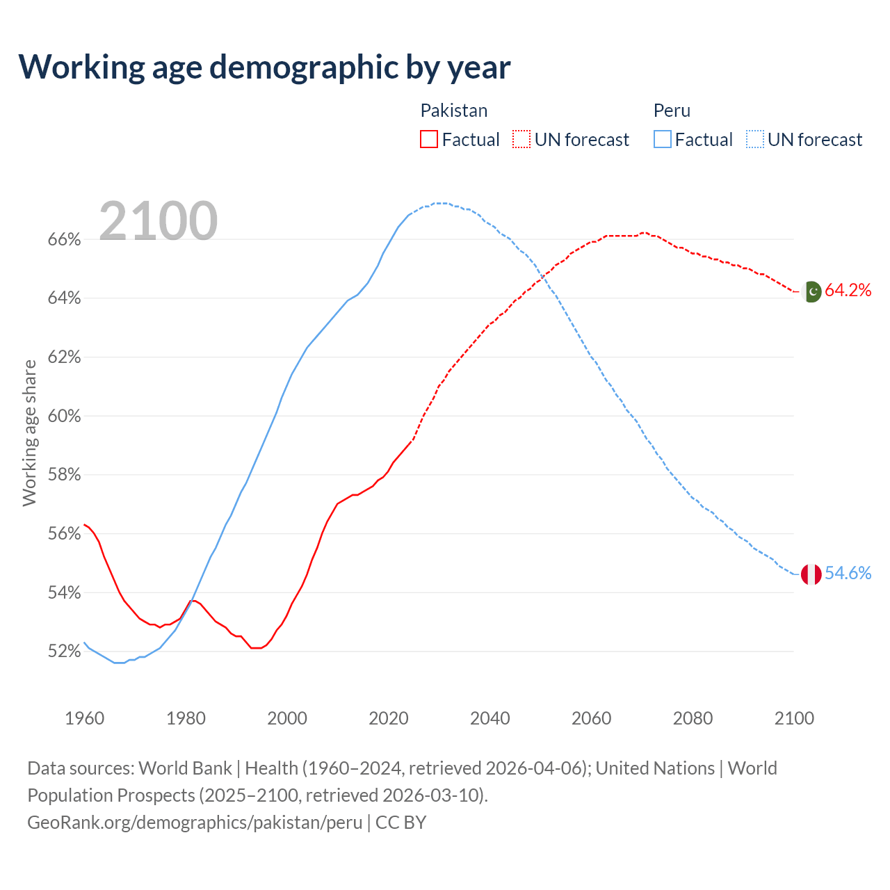 - Pakistan has 154M working age adults (aged 15-64) vs 23.4M in Peru.