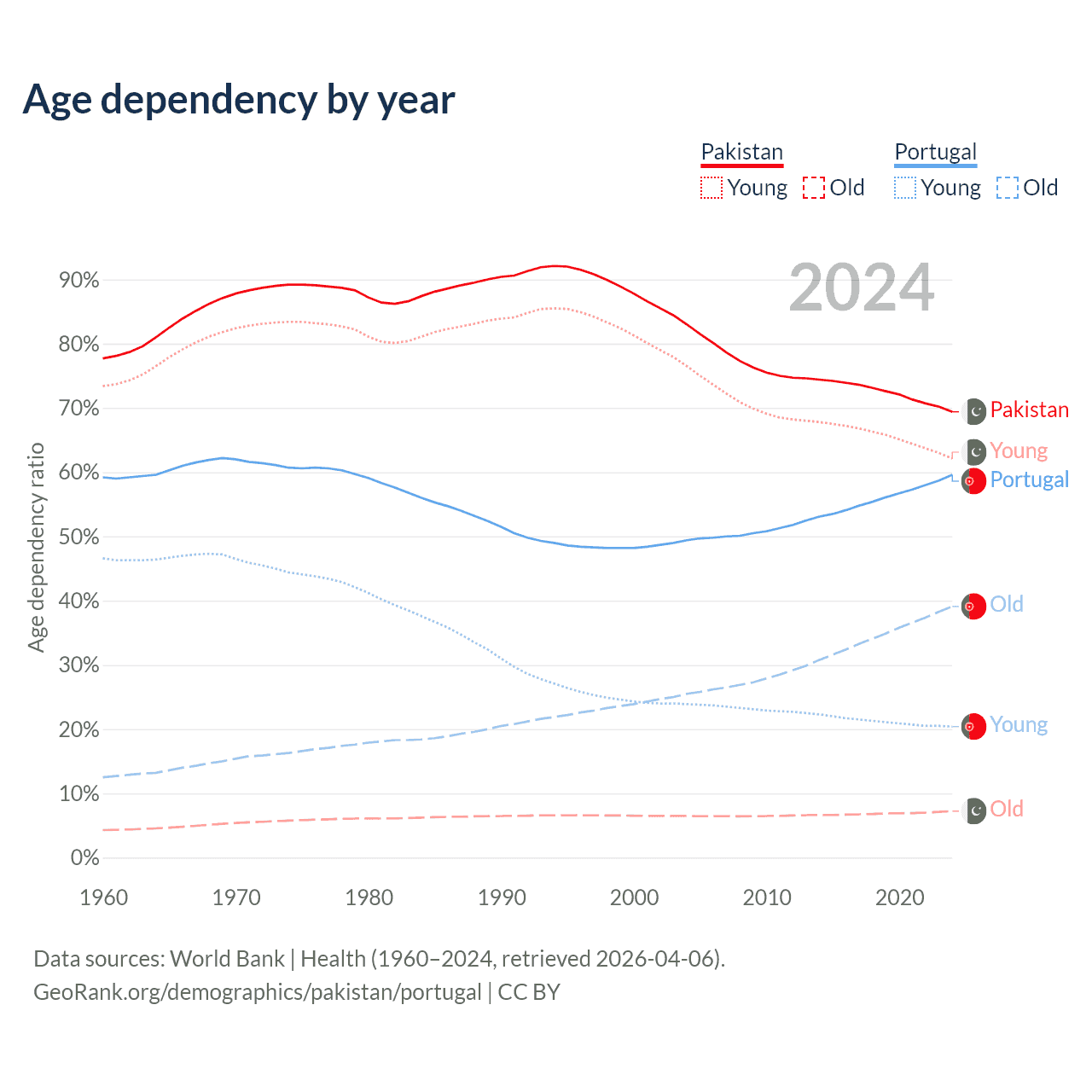 - Pakistan is ranked 154/196 by median age (oldest to youngest) vs 5/196 for Portugal.