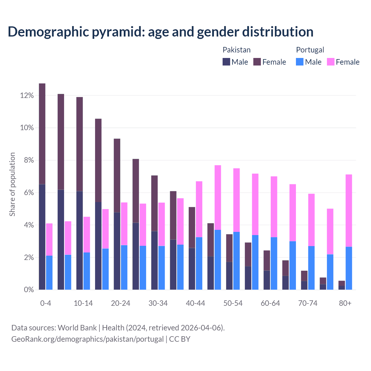 Demographics of Pakistan compared to Portugal: