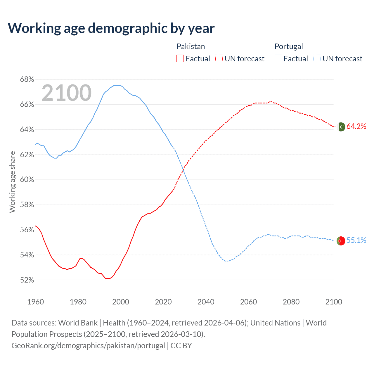 - Pakistan has 154M working age adults (aged 15-64) vs 6.68M in Portugal.
