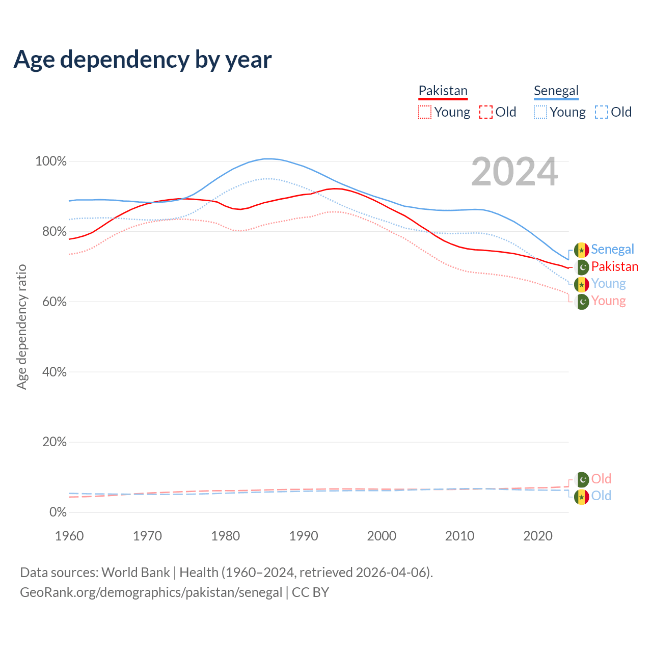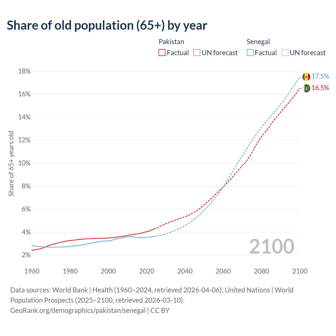 - The share of old-age demographic (65+) in Pakistan is 4.28% vs 3.62% in Senegal.
