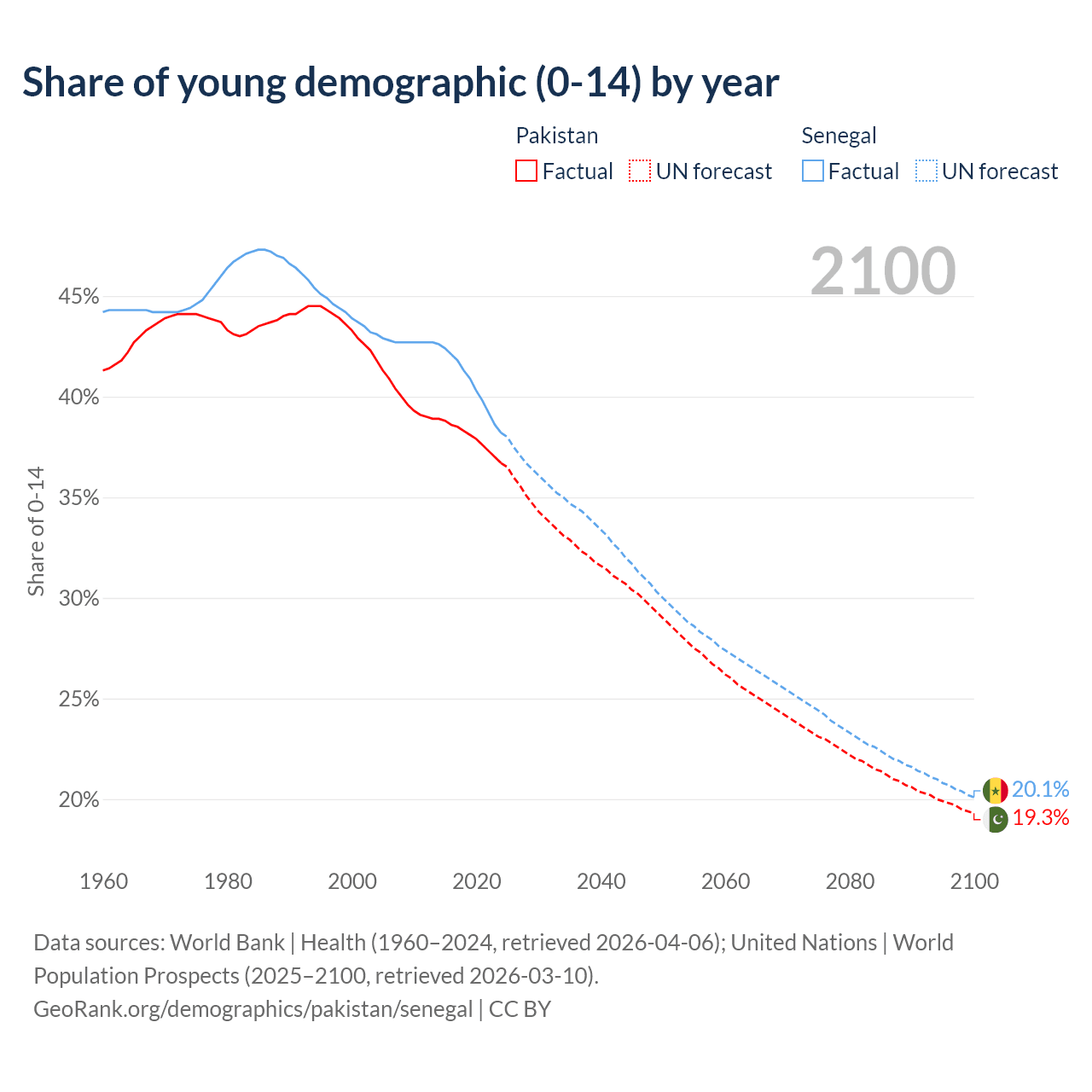 - Pakistan is ranked 154/196 by median age (oldest to youngest) vs 162/196 for Senegal.