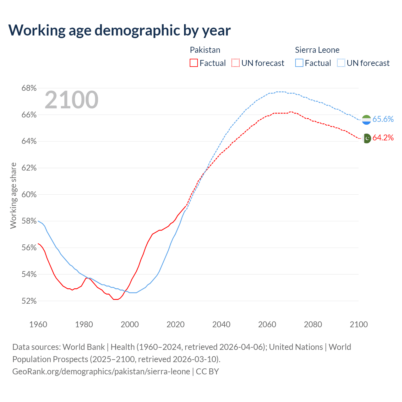 - Pakistan has 154M working age adults (aged 15-64) vs 5.31M in Sierra Leone.