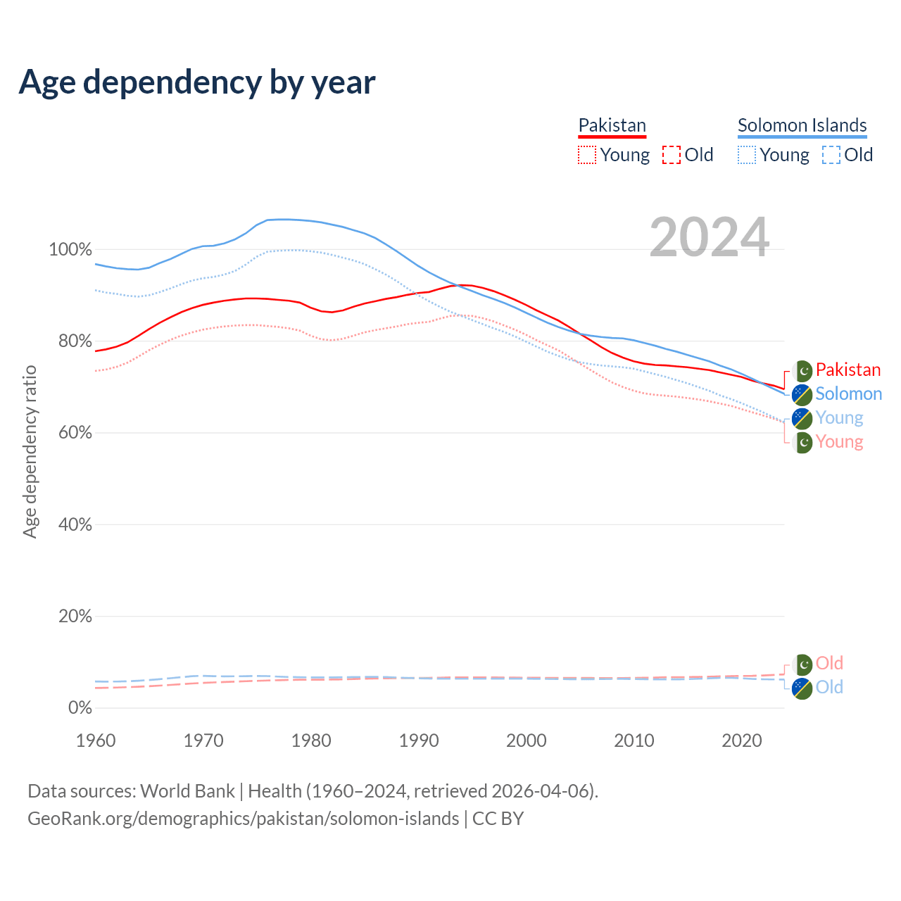 - The share of old-age demographic (65+) in Pakistan is 4.28% vs 3.64% in the Solomon Islands.