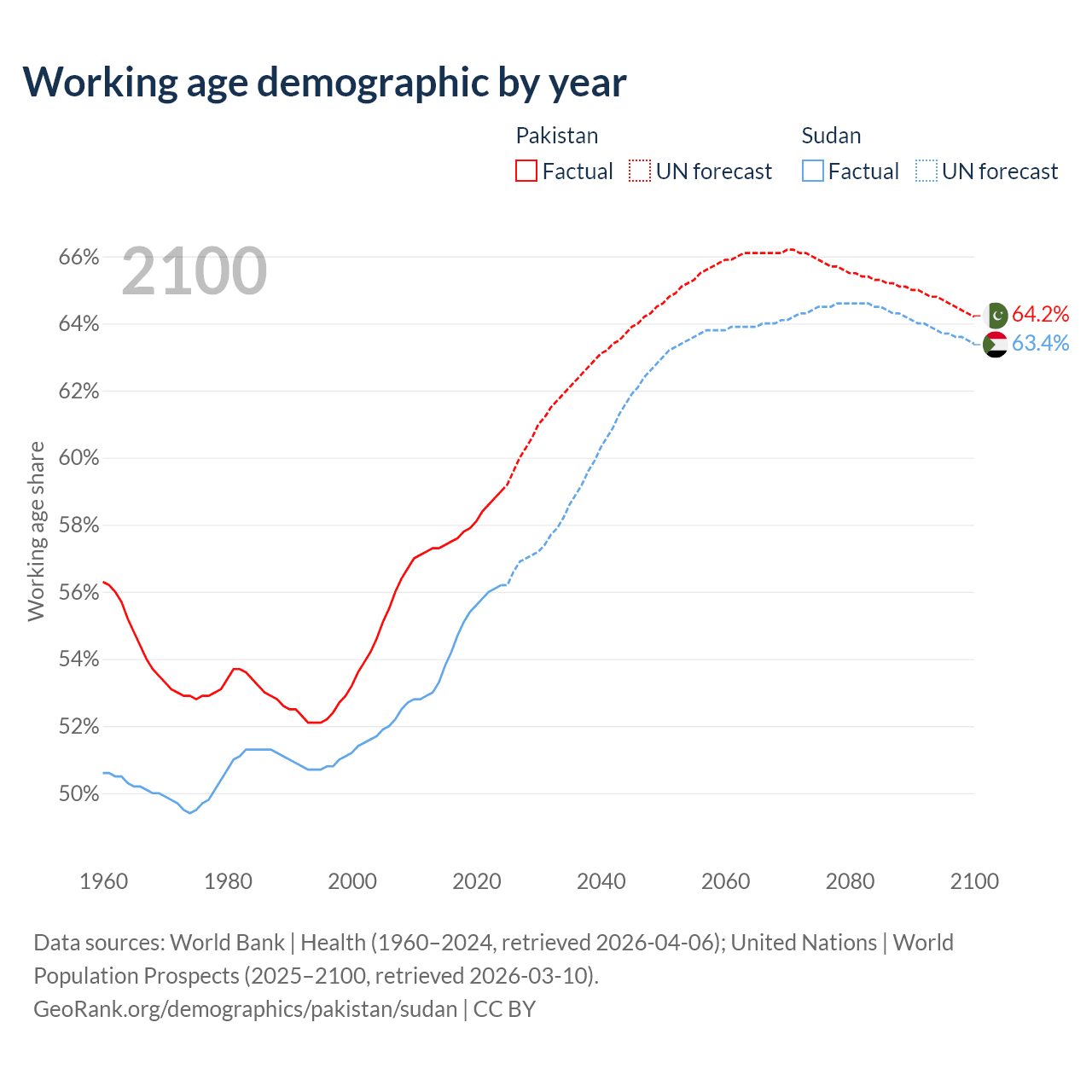 - Pakistan has 154M working age adults (aged 15-64) vs 30M in Sudan.