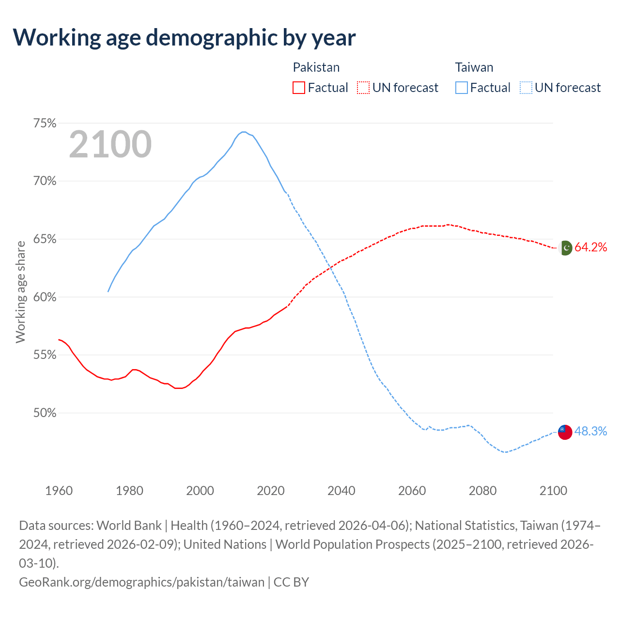 - Pakistan has 154M working age adults (aged 15-64) vs 16.1M in Taiwan.