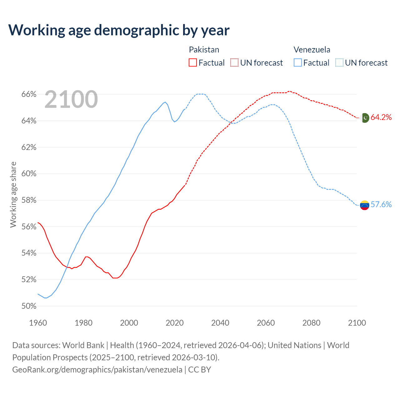 - Pakistan has 154M working age adults (aged 15-64) vs 18.6M in Venezuela.