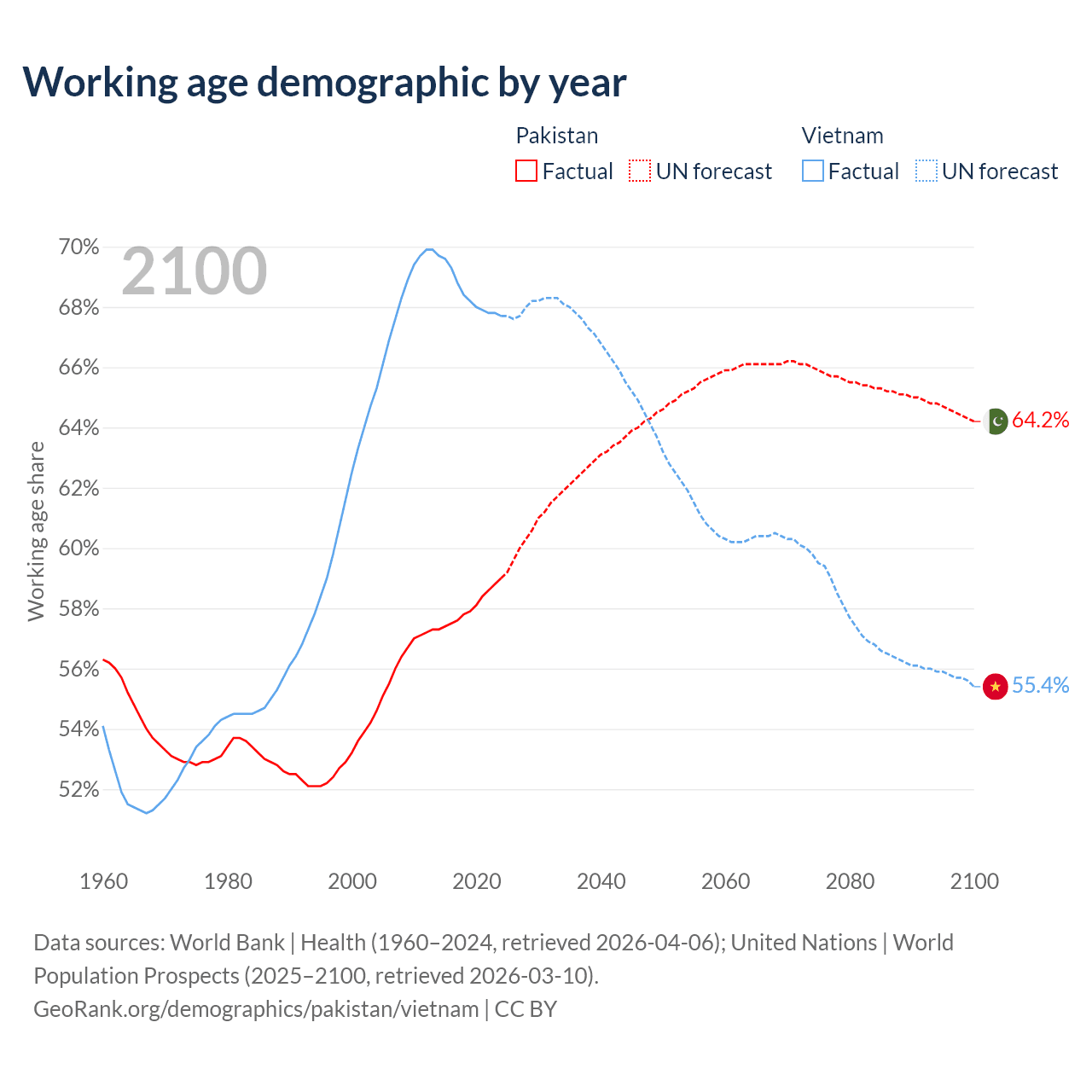 - Pakistan has 154M working age adults (aged 15-64) vs 69.3M in Vietnam.