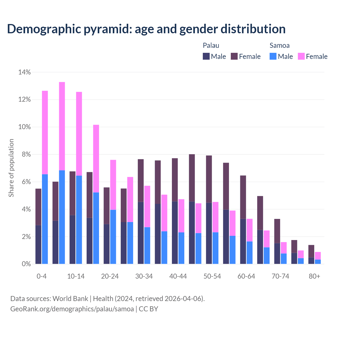 Demographics of Palau compared to Samoa: