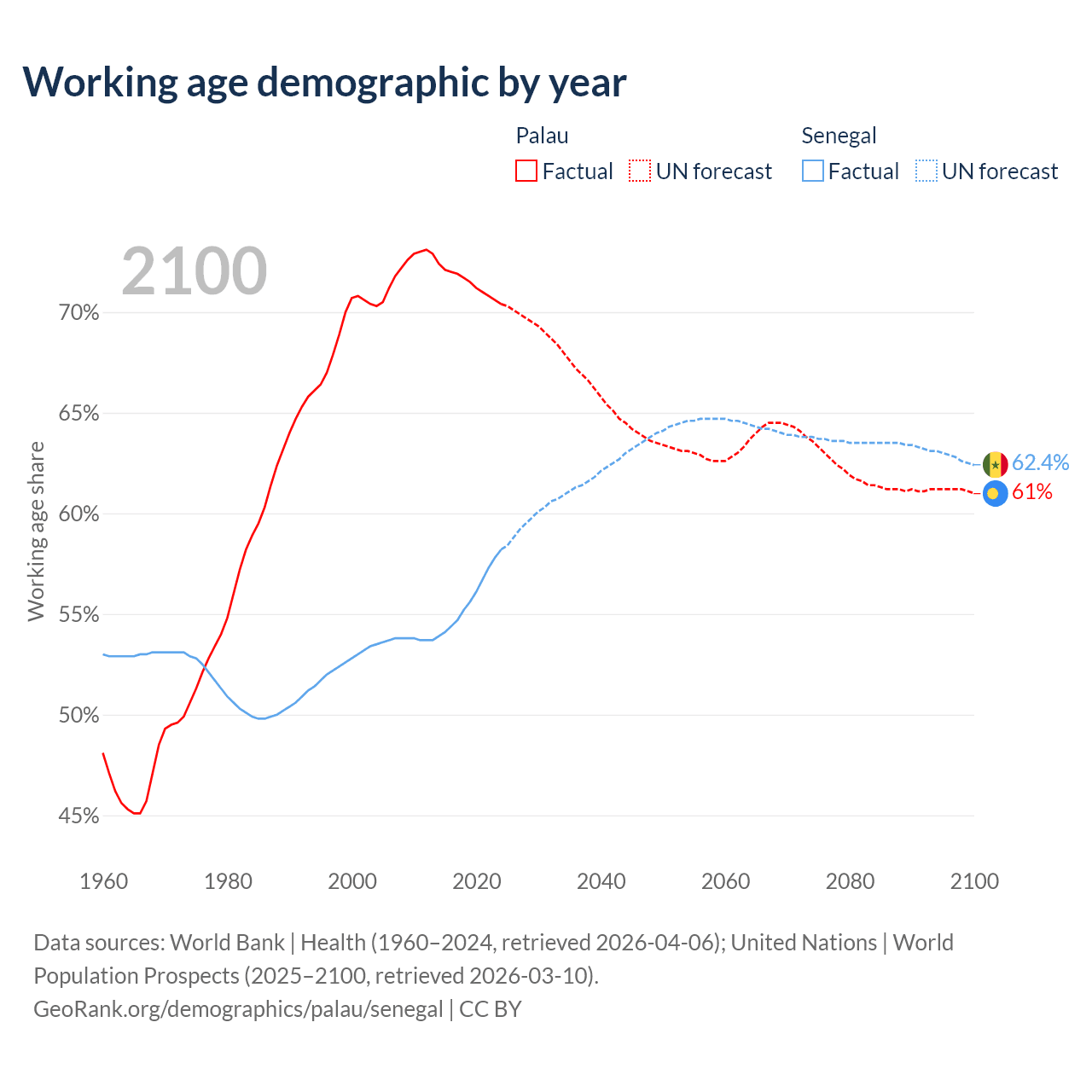 - Palau has 12.4K working age adults (aged 15-64) vs 11.3M in Senegal.