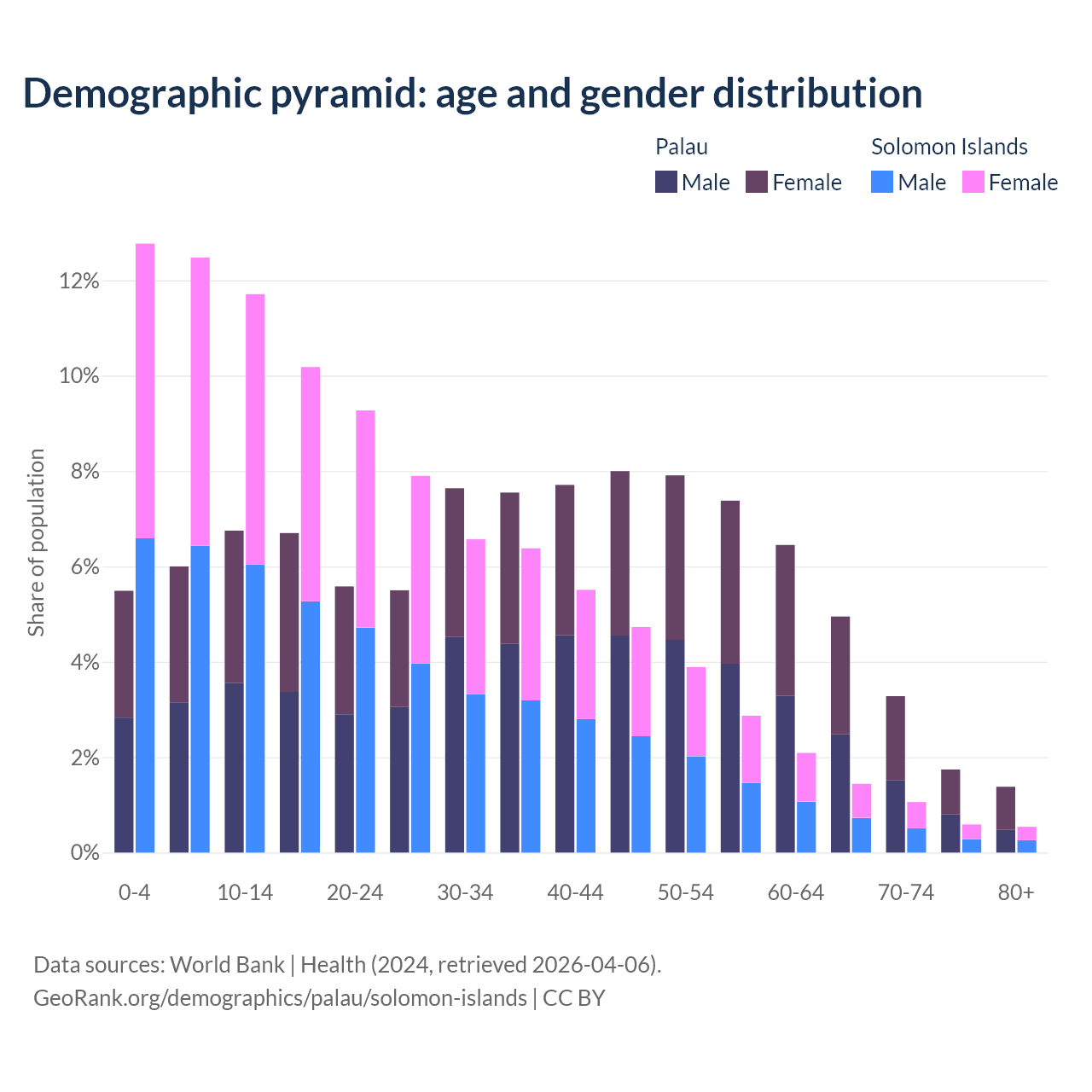 Demographics of Palau compared to the Solomon Islands: