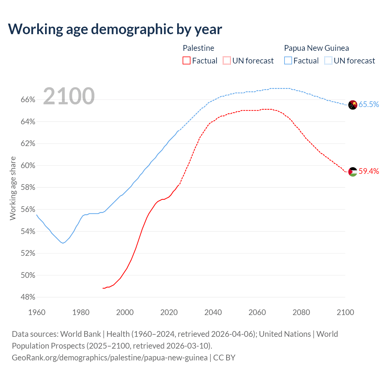 - As of 2026, the population of Palestine is 5.5M vs 11M in Papua New Guinea - 2 times difference.