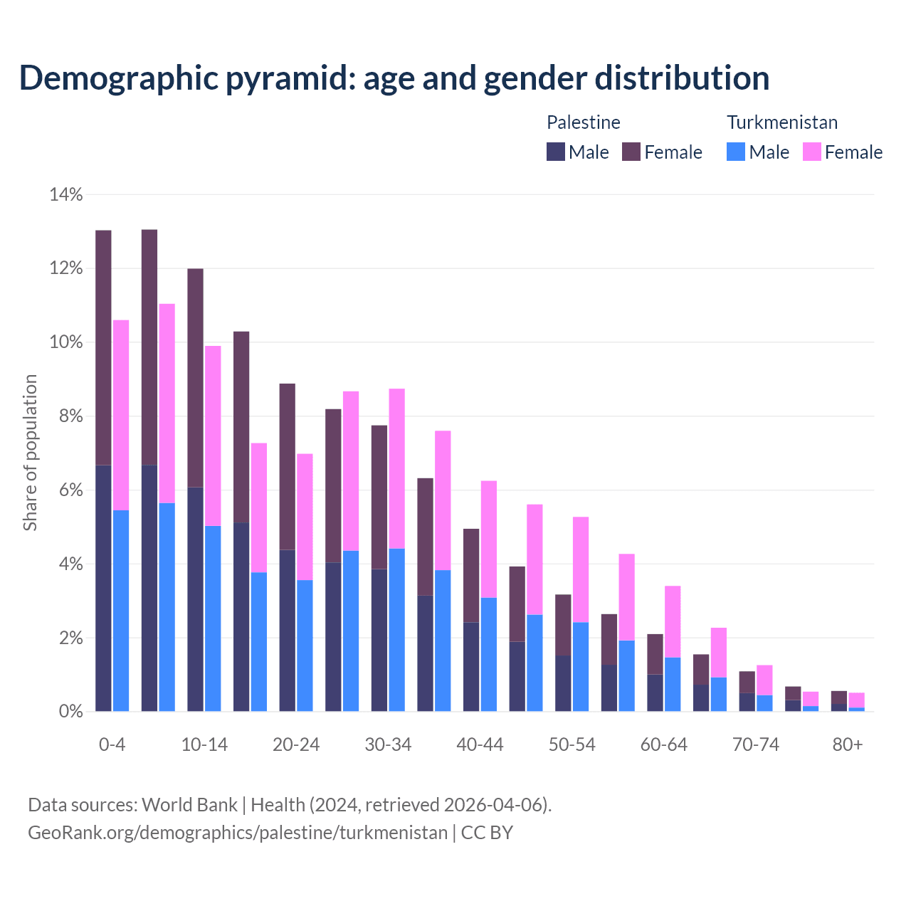 Demographics of Palestine compared to Turkmenistan: