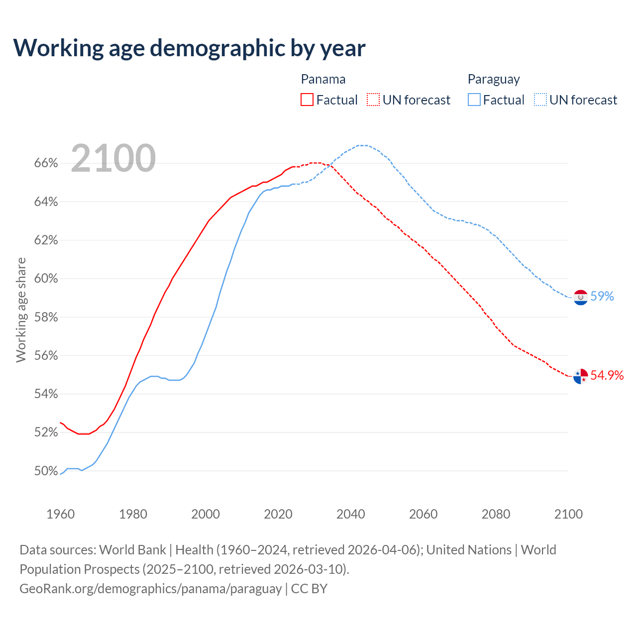 - Panama has 3.05M working age adults (aged 15-64) vs 4.62M in Paraguay.