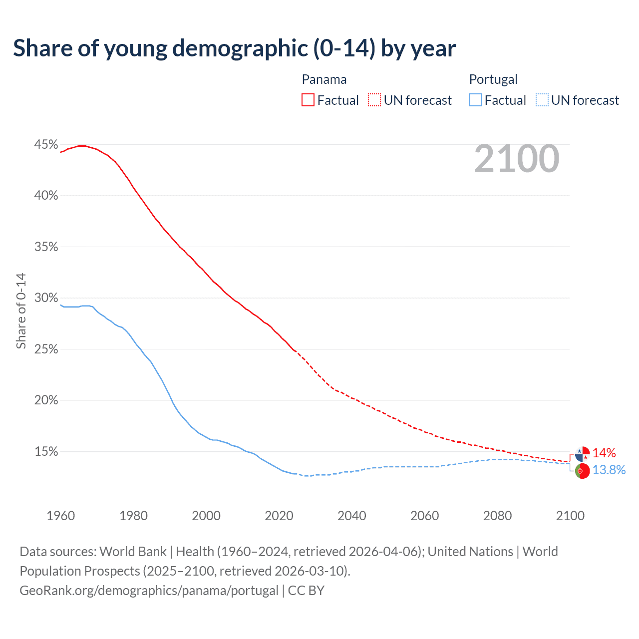 - The share of young demographic (0-15 years old) in Panama is 24.9% vs 12.8% in Portugal.