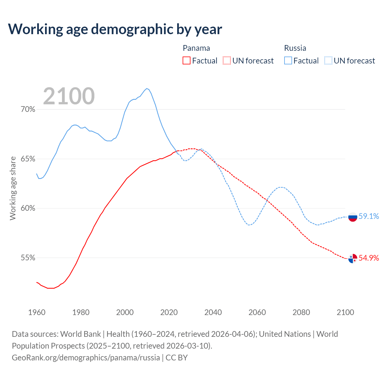 - Panama has 3.05M working age adults (aged 15-64) vs 93M in Russia.