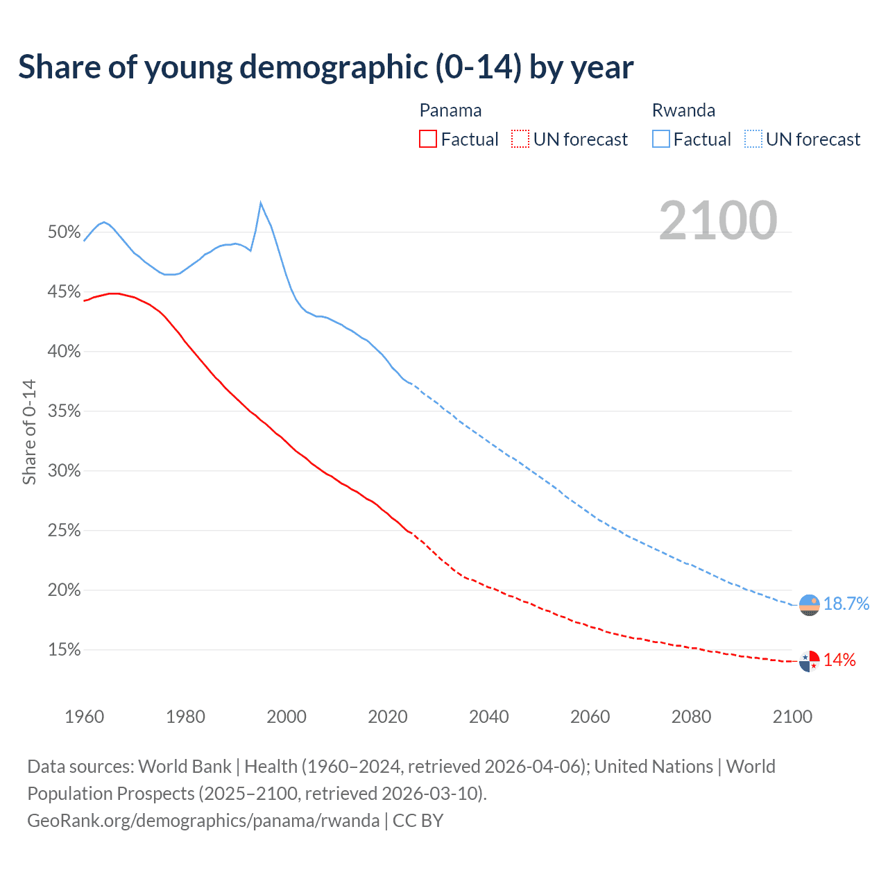 - The share of young demographic (0-15 years old) in Panama is 24.9% vs 37.4% in Rwanda.