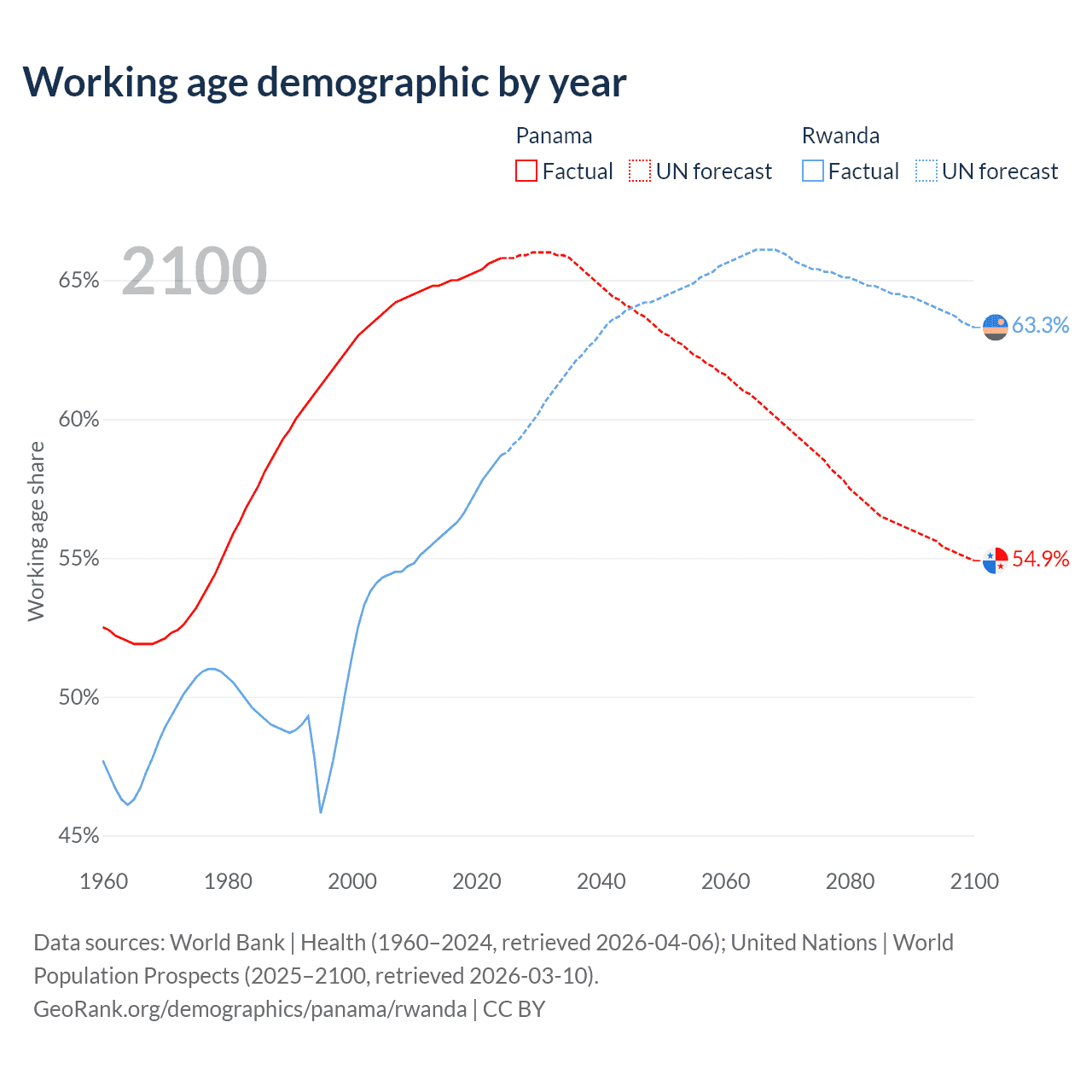 - Panama has 3.05M working age adults (aged 15-64) vs 8.79M in Rwanda.