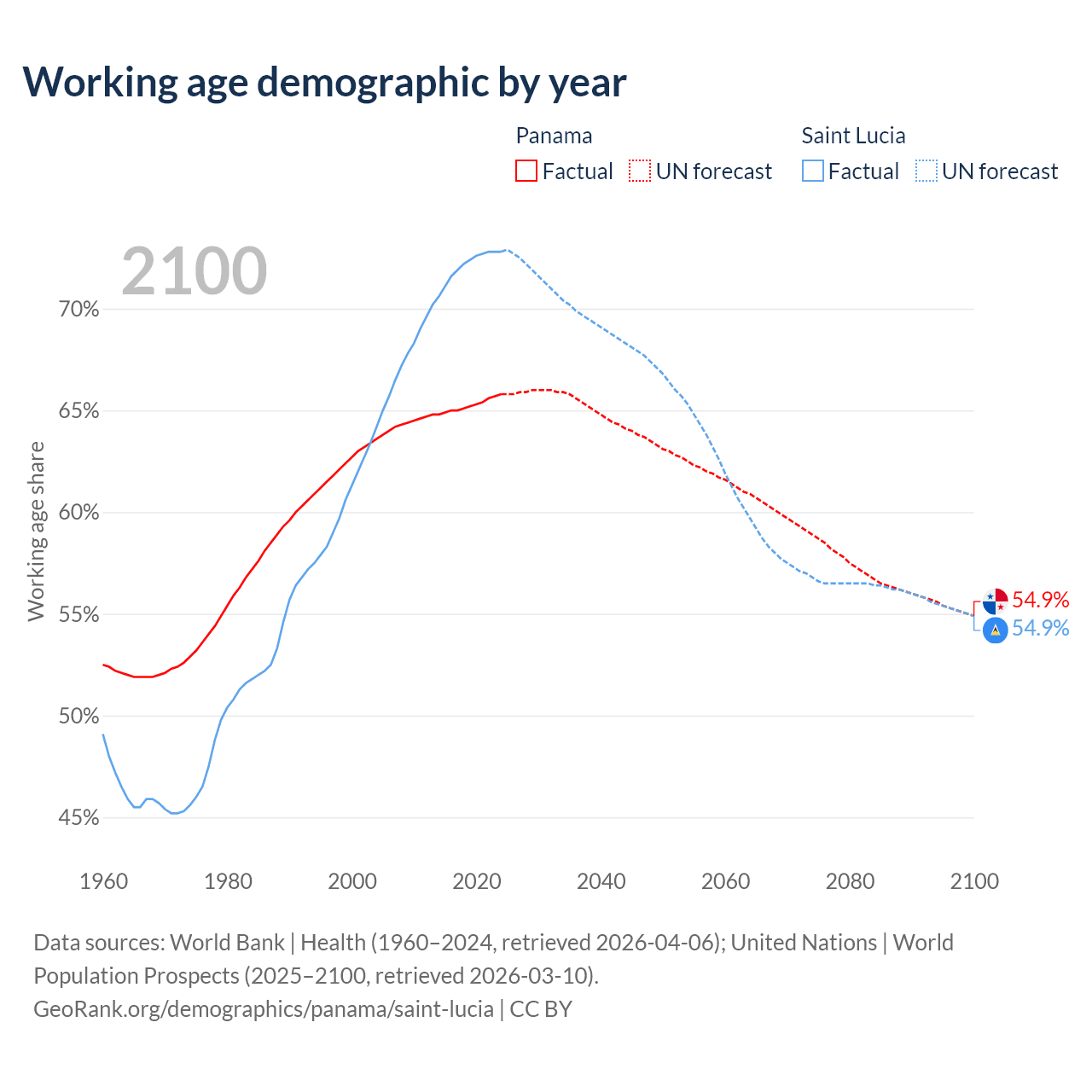 - Panama has 3.05M working age adults (aged 15-64) vs 132K in Saint Lucia.