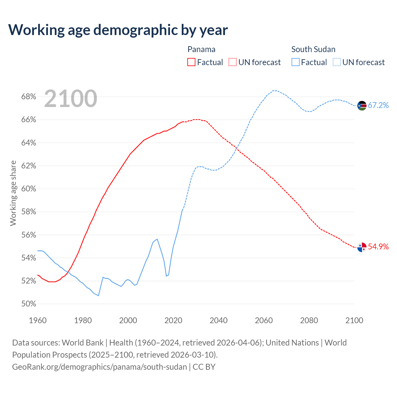 - Panama has 3.05M working age adults (aged 15-64) vs 7.27M in South Sudan.