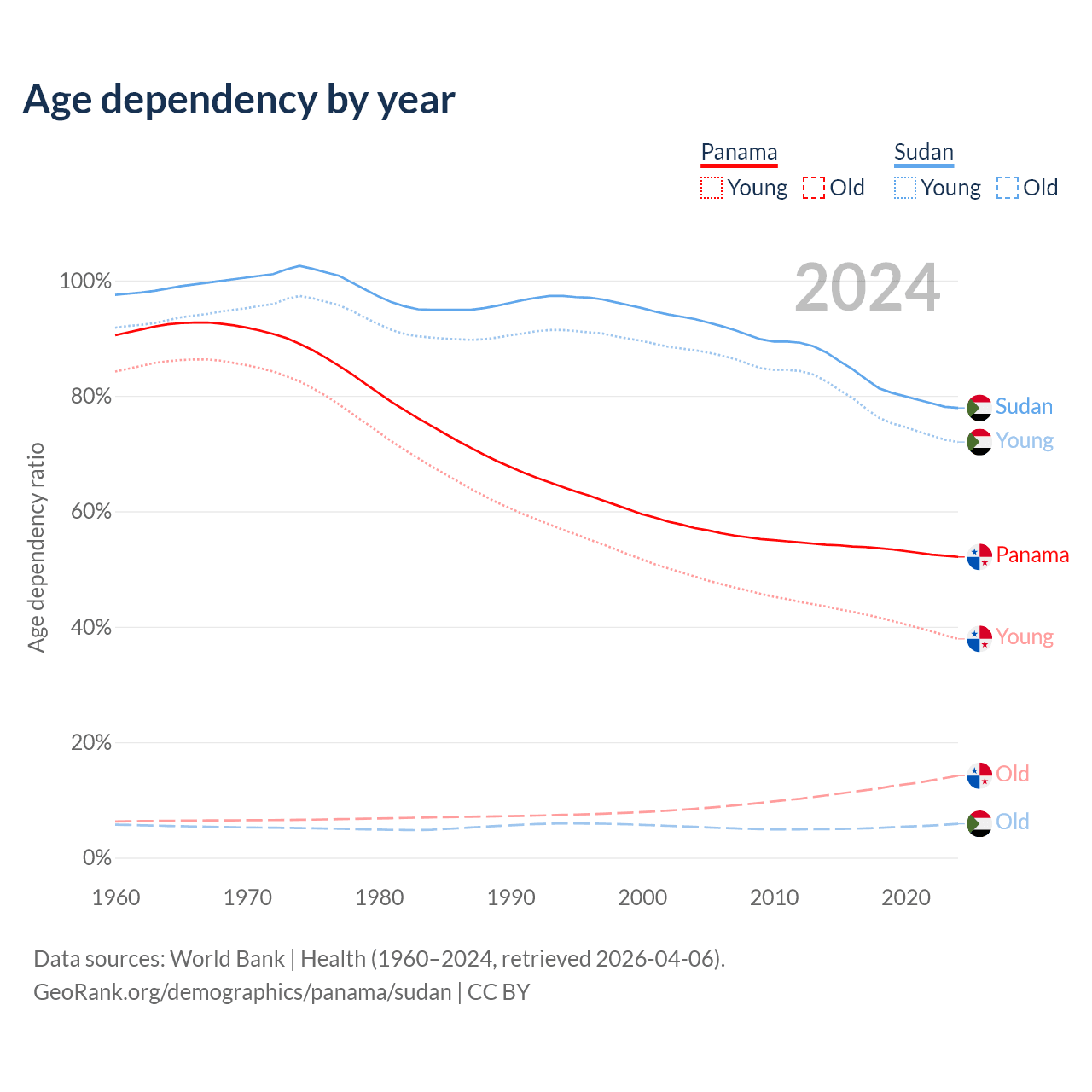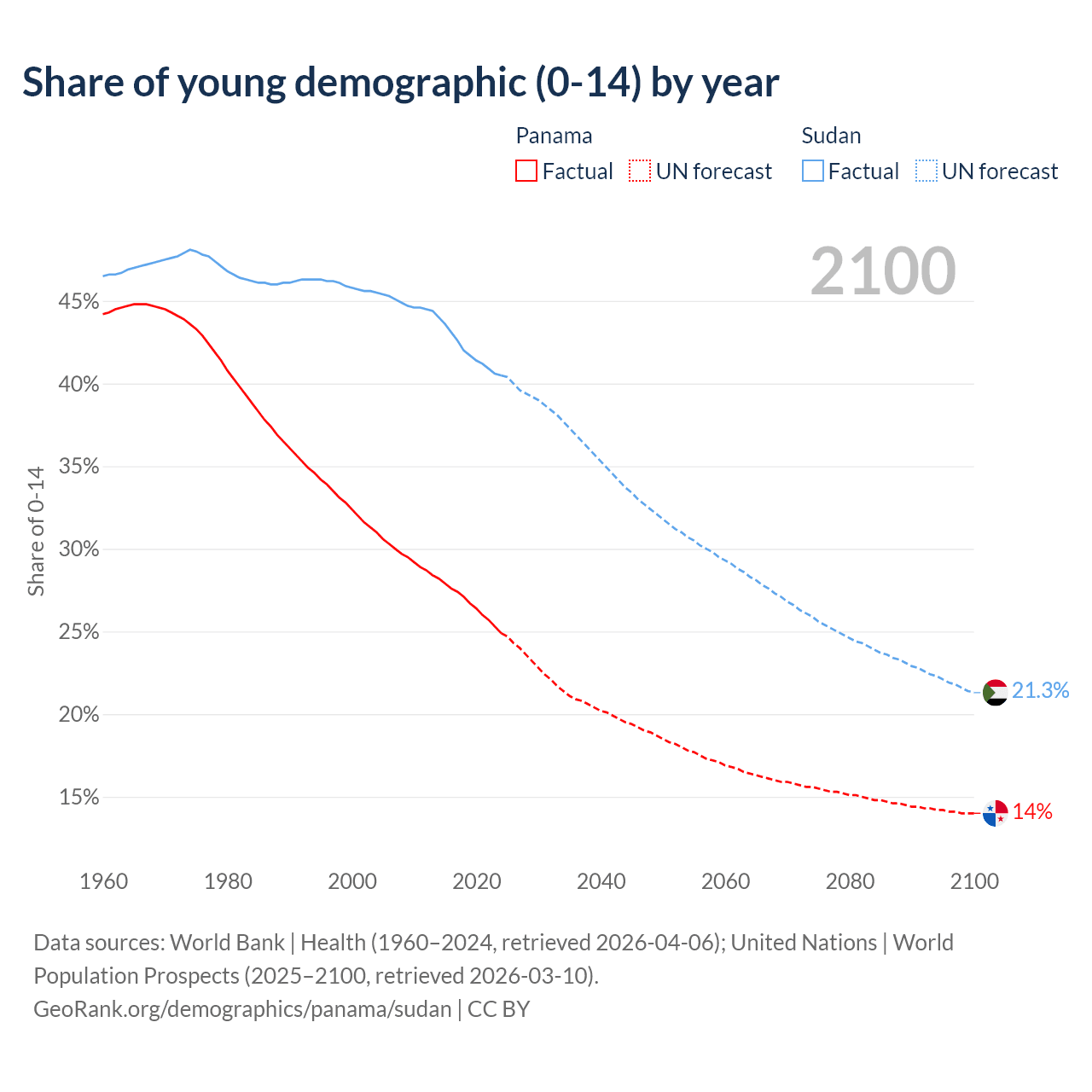 - The share of young demographic (0-15 years old) in Panama is 24.9% vs 40.5% in Sudan.