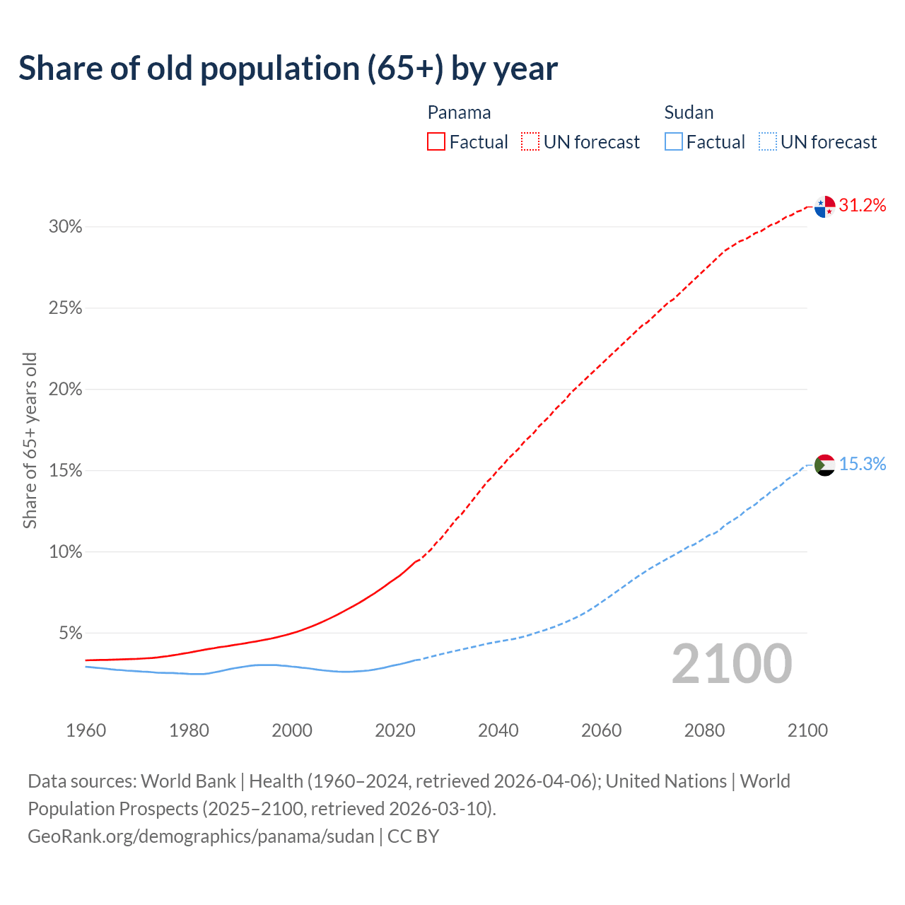 - The share of old-age demographic (65+) in Panama is 9.35% vs 3.3% in Sudan.