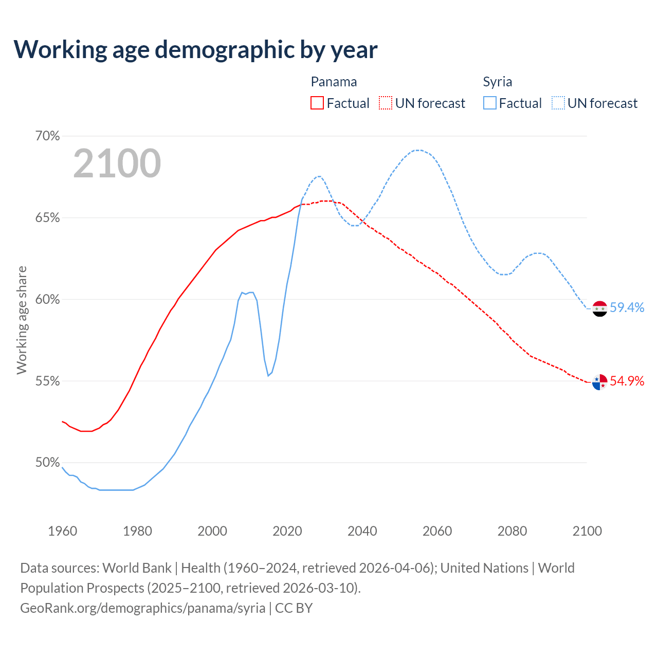 - Panama has 3.05M working age adults (aged 15-64) vs 17.7M in Syria.