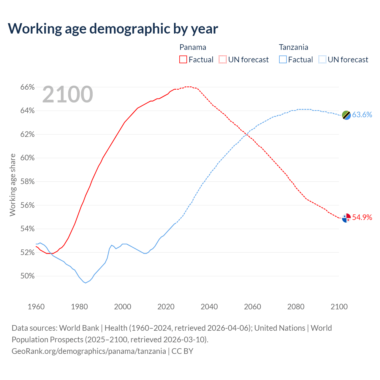 - Panama has 3.05M working age adults (aged 15-64) vs 39.8M in Tanzania.