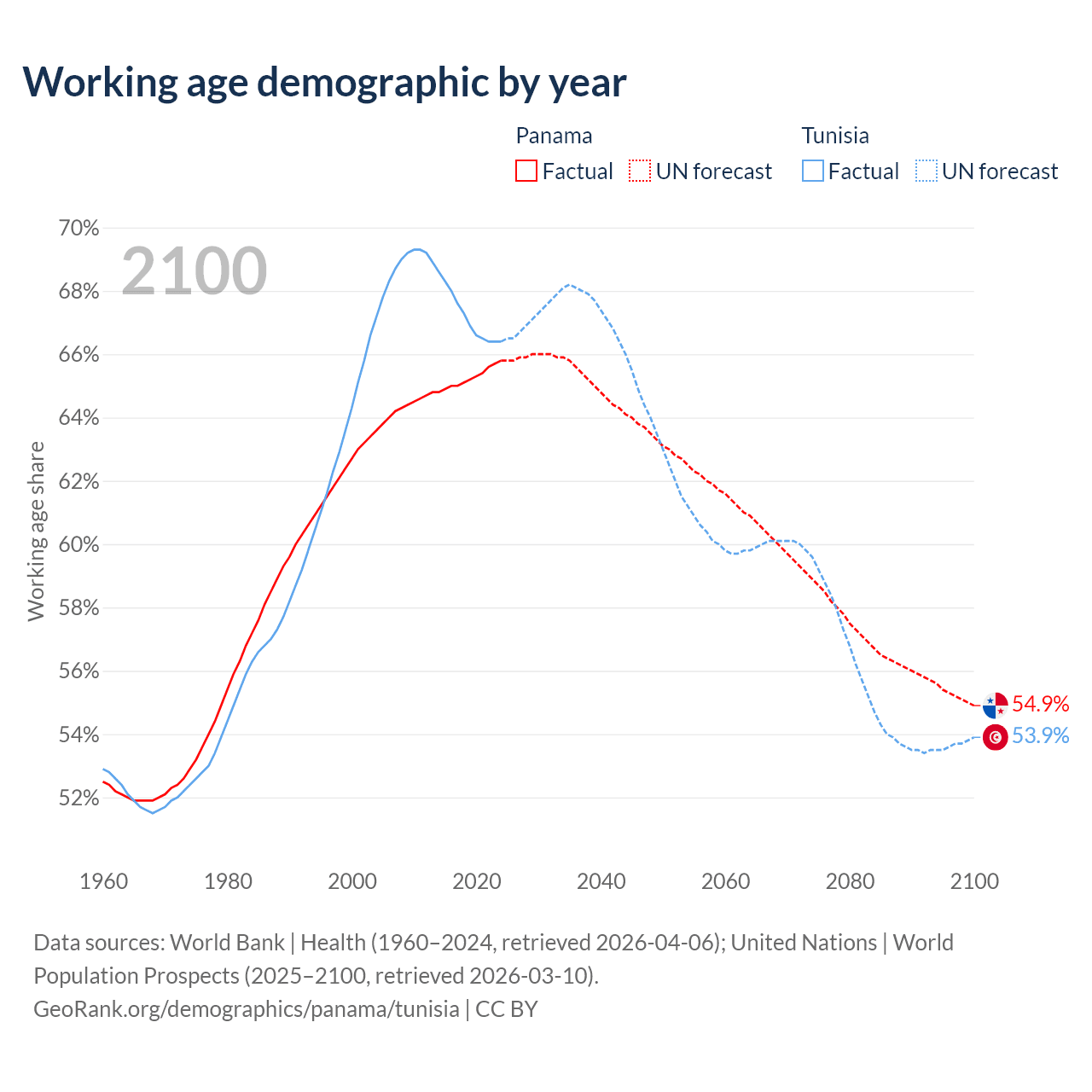 - Panama has 3.05M working age adults (aged 15-64) vs 8.26M in Tunisia.