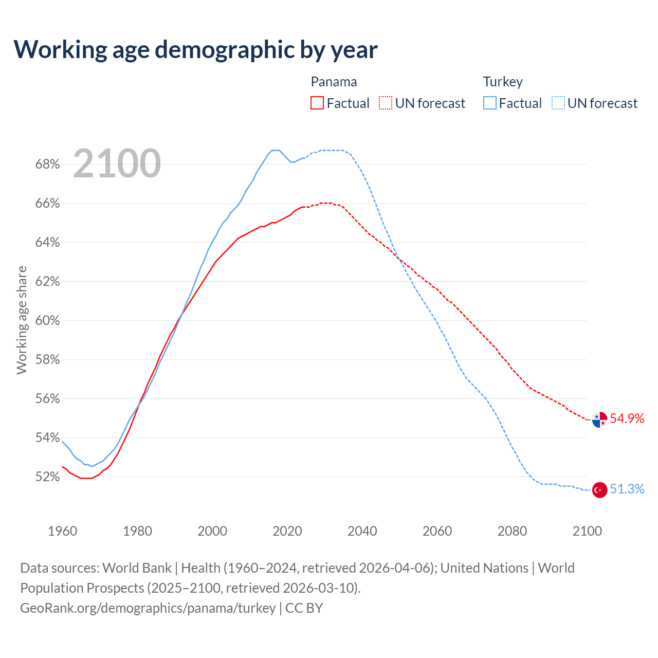 - Panama has 3.05M working age adults (aged 15-64) vs 58.7M in Turkey.