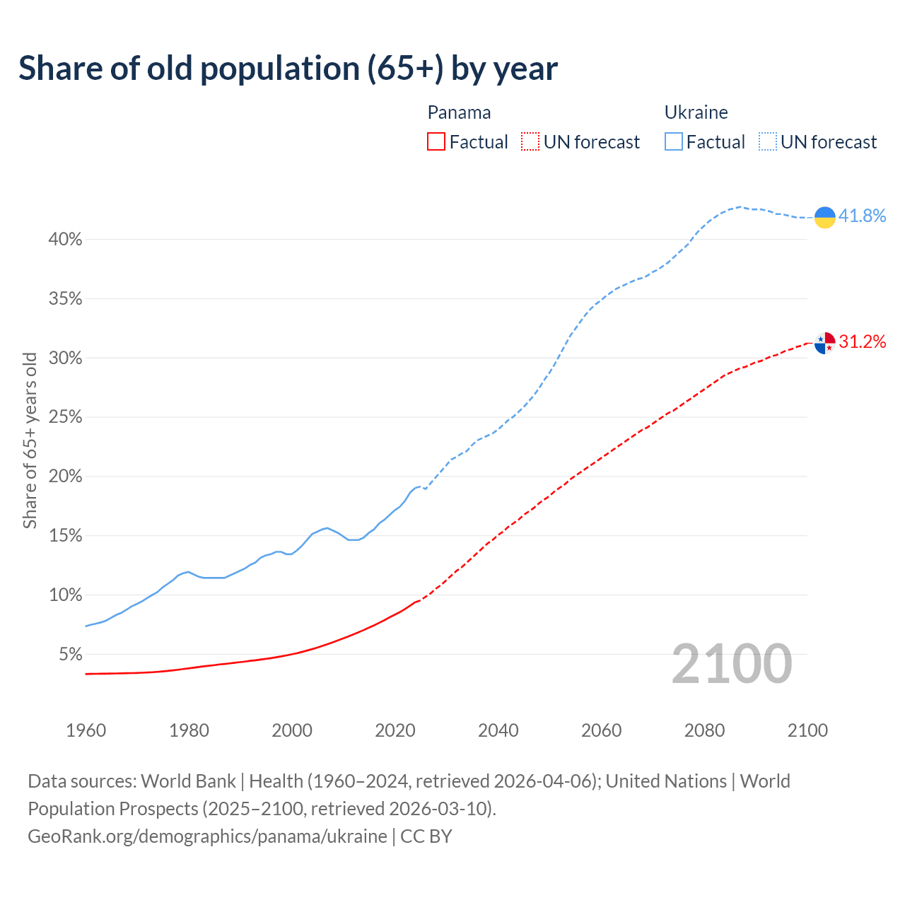 - The share of old-age demographic (65+) in Panama is 9.35% vs 19% in Ukraine.