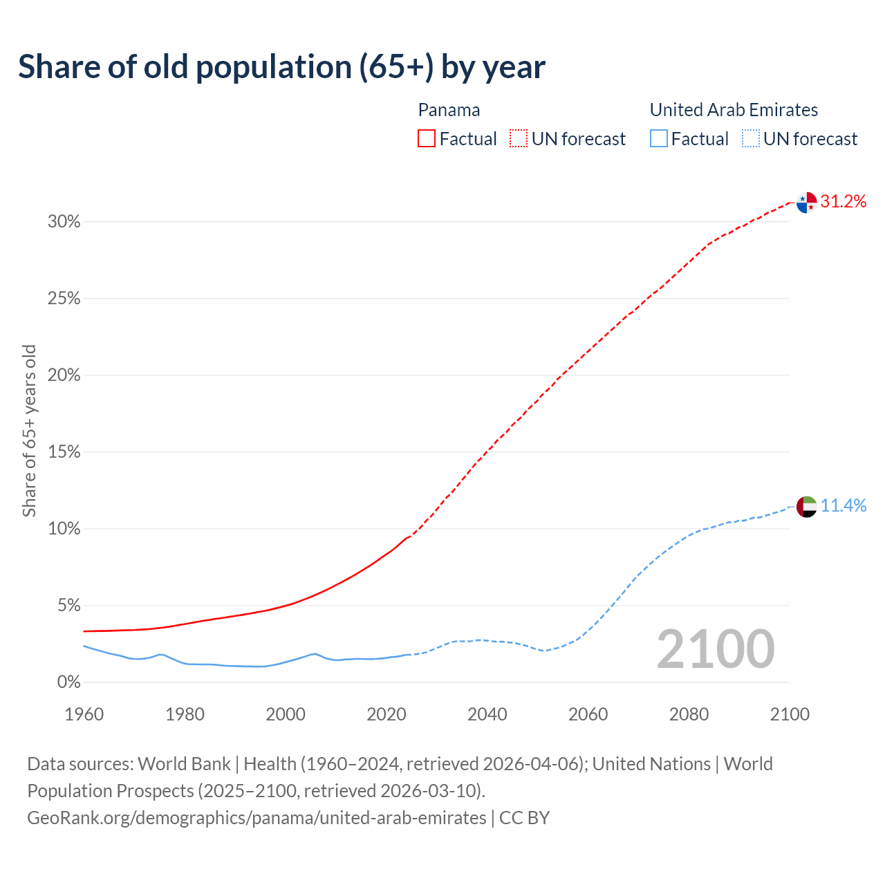 - The share of old-age demographic (65+) in Panama is 9.35% vs 1.77% in the United Arab Emirates.
