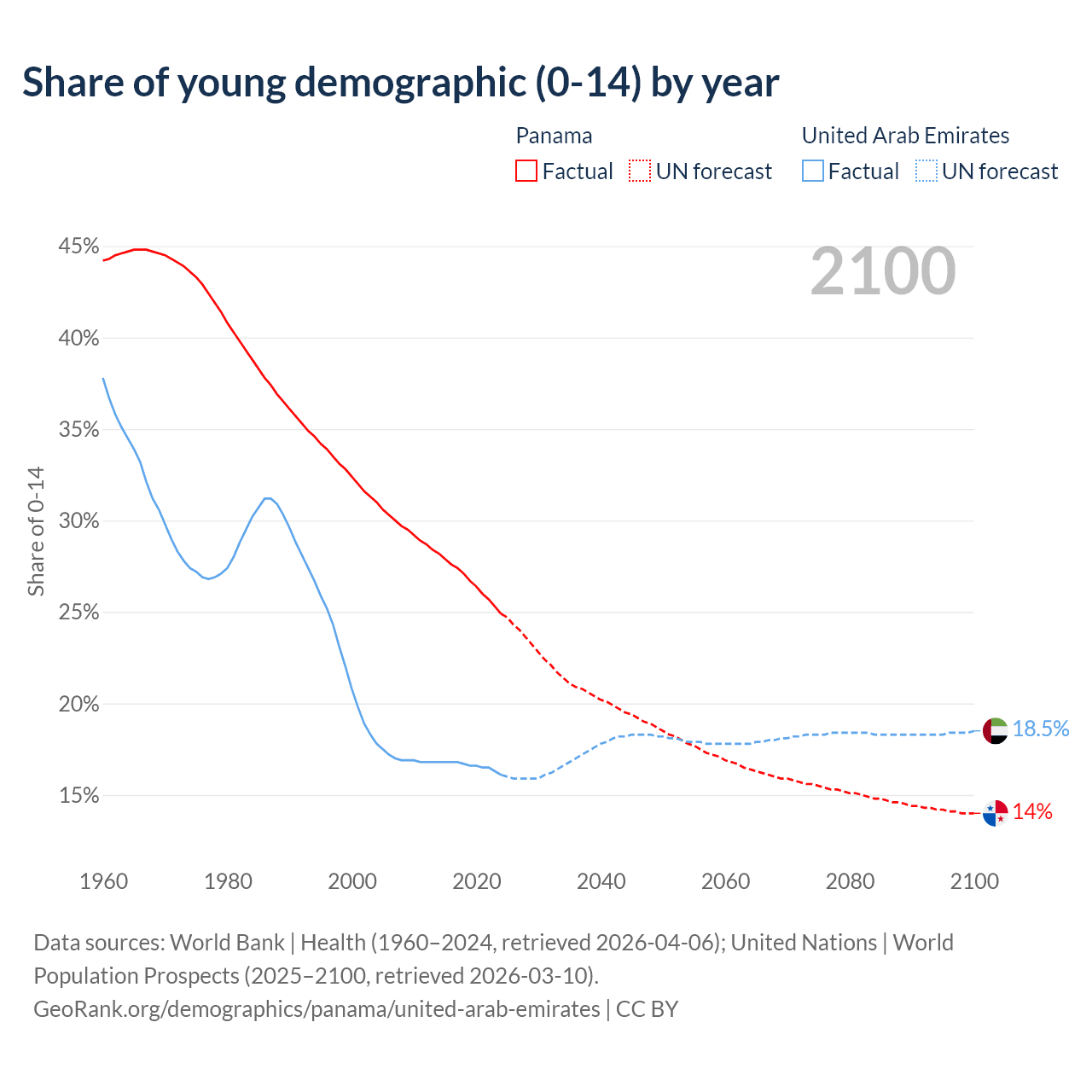 - The share of young demographic (0-15 years old) in Panama is 24.9% vs 16.1% in the United Arab Emirates.